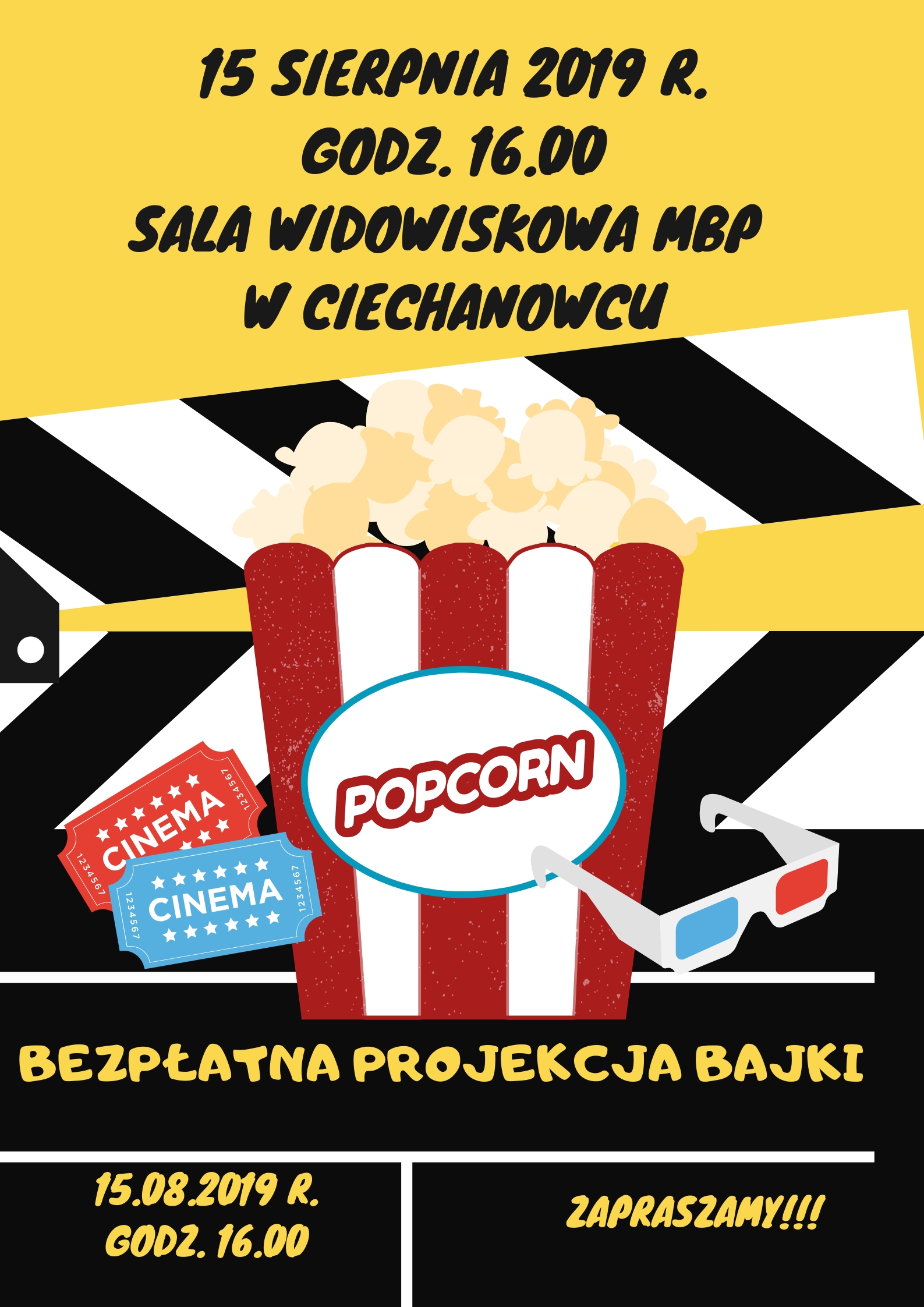 Ciechanowiecki Ośrodek Kultury i Sportu wraz z Miejską Biblioteką Publiczną w Ciechanowcu zapraszają dzieci na bezpłatną projekcję bajki.