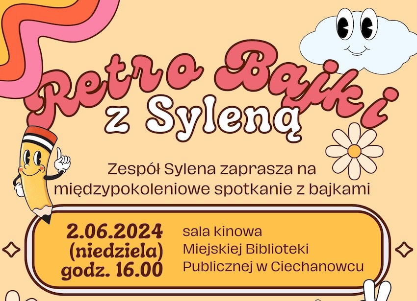 Zespół Sylena oraz Miejska Biblioteka Publiczna w Ciechanowcu serdecznie zapraszają na międzypokoleniowe spotkanie z bajkami w ramach inicjatywy "Sentymentalna podróż w świat bajek".