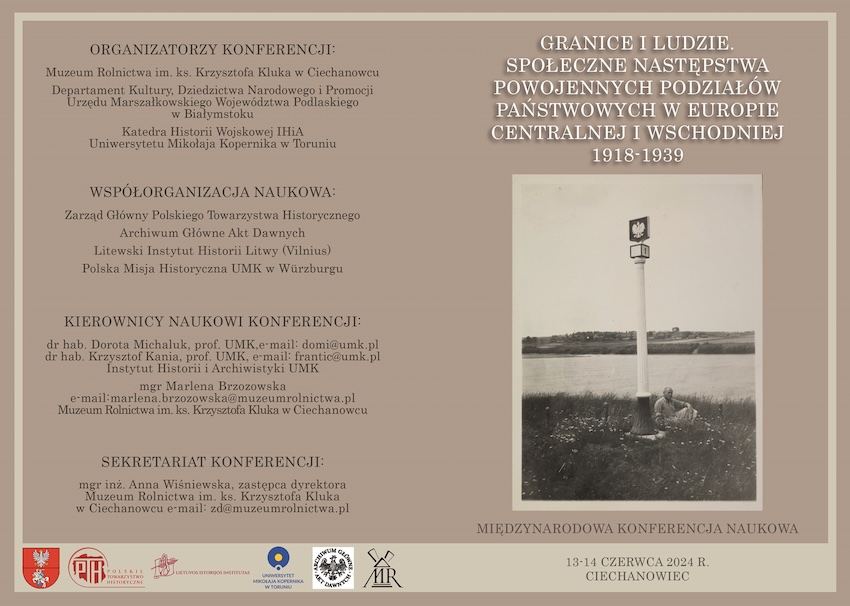 W dniach 13-14 czerwca 2024 roku w Muzeum Rolnictwa im. ks. Krzysztofa Kluka w Ciechanowcu odbędzie się międzynarodowa konferencja pt. ,,Granice i ludzie. Społeczne następstwa powojennych podziałów państwowych w Europie Centralnej i Wschodniej 1918-1939”. Głównym tematem dyskusji będzie społeczny odbiór zaniku starych i recepcja nowych granic państwowych oraz wpływ tej sytuacji na życie mieszkańców.