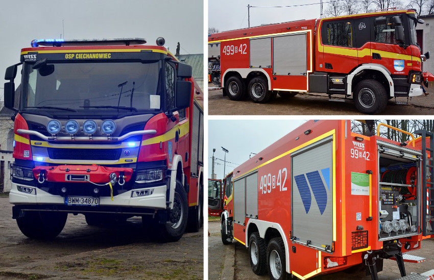 Ochotnicza Straż Pożarna w Ciechanowcu znacząco zwiększyła swoje możliwości ratowniczo-gaśnicze dzięki nabyciu nowoczesnego ciężkiego samochodu pożarniczego. Fabrycznie nowy pojazd marki Scania P410, z zaawansowanym napędem 6x6, został specjalnie wybrany, aby sprostać najtrudniejszym wyzwaniom podczas akcji ratowniczych. Wyjątkowe znaczenie ma zainstalowany w samochodzie zbiornik wody o imponującej pojemności 8400 litrów oraz autopompa, której wydajność sięga 6500 L/min, co stanowi kluczowe wsparcie w szybkim i efektywnym działaniu podczas pożarów i innych sytuacji kryzysowych.