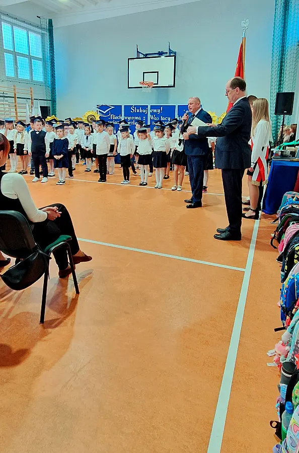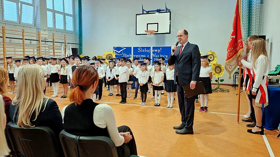 Po części artystycznej głos zabrali zaproszeni goście. Dyrektor szkoły, Krzysztof Pełszyk, oraz wicedyrektor, Dorota Agata Koc, powitali nowych uczniów w murach placówki. Ciepłe słowa do dzieci skierowali również burmistrz Ciechanowca Eugeniusz Święcki oraz przedstawicielka rodziców Anna Półtorak Gieros, życząc pierwszoklasistom wielu sukcesów i radości z nauki. Uroczystego błogosławieństwa plecaków i przyborów szkolnych dokonał ks. Tadeusz Kryński, proboszcz parafii Trójcy Przenajświętszej.