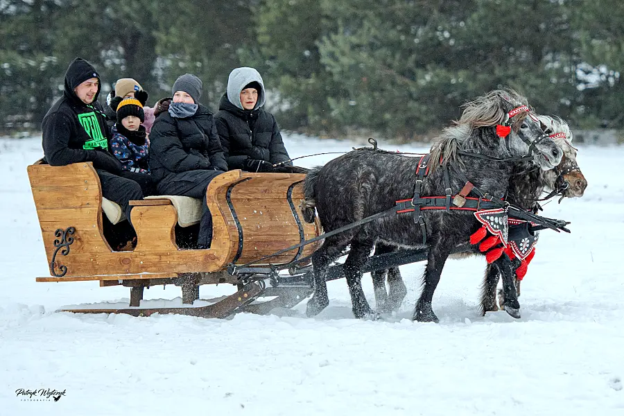 Zimowa aura dopisała, a śnieg stworzył idealne warunki do plenerowej zabawy. W niedzielne popołudnie, 25 stycznia 2026 roku, mieszkańcy Ciechanowca i okolic spotkali się na Targowisku Miejskim, by wspólnie wziąć udział w zorganizowanym kuligu. Wydarzenie przyciągnęło wielu chętnych na przejażdżki zaprzęgami konnymi oraz biesiadę przy ognisku.