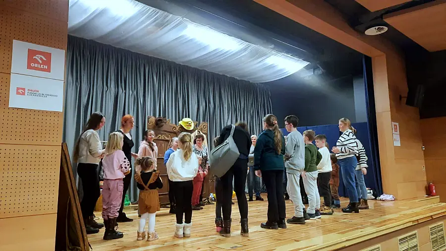 Samo przedstawienie było jednak tylko wstępem do dalszej aktywności. Tuż po opadnięciu kurtyny, organizatorzy zaprosili uczestników na warsztaty teatralne. Dzieci miały niepowtarzalną okazję, by stanąć na deskach sali widowiskowej MBP i spróbować swoich sił w prostych zadaniach aktorskich. Zajęcia te miały na celu nie tylko zabawę, ale przede wszystkim rozwijanie kreatywności, śmiałości oraz umiejętności wyrażania emocji.