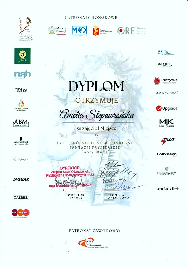 Najwyższe miejsce na podium wywalczyła Amelia Ślepowrońska z klasy 4b. Jej praca z modelką Nicol Siłka zachwyciła jury. Projekt oceniono jako spójny, oryginalny i wykonany na bardzo wysokim poziomie. Zwycięska stylizacja wyróżniała się artystycznym podejściem do formy i doskonałym połączeniem samej fryzury z przygotowaną kreacją. Oprócz pierwszego miejsca uczennica z Ciechanowca zdobyła aż trzy wyróżnienia od sponsorów imprezy, co potwierdza wyjątkowość jej pracy.