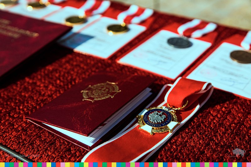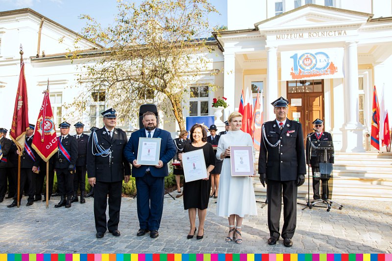 Następnie z okazji 100-lecia OSP odznaczono osoby oraz instytucje państwowe za aktywną działalność wspomagającą realizację zadań w ochronie przeciwpożarowej dla dobra społeczeństwa.
