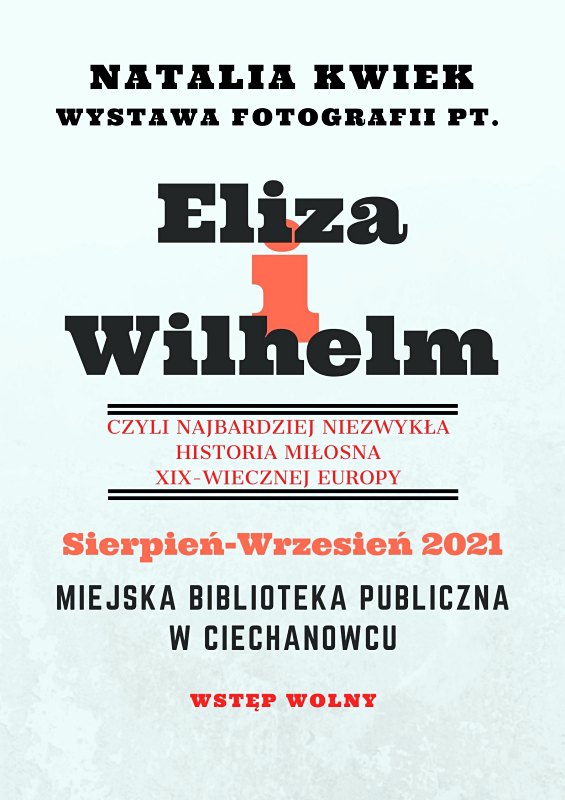 Ciechanowiecki Ośrodek Kultury i Sportu zaprasza do obejrzenia wystawy fotografii autorstwa Natalii Kwiek pt. „Eliza i Wilhelm – Niezwykła historia miłosna XIX – wiecznej Europy”.