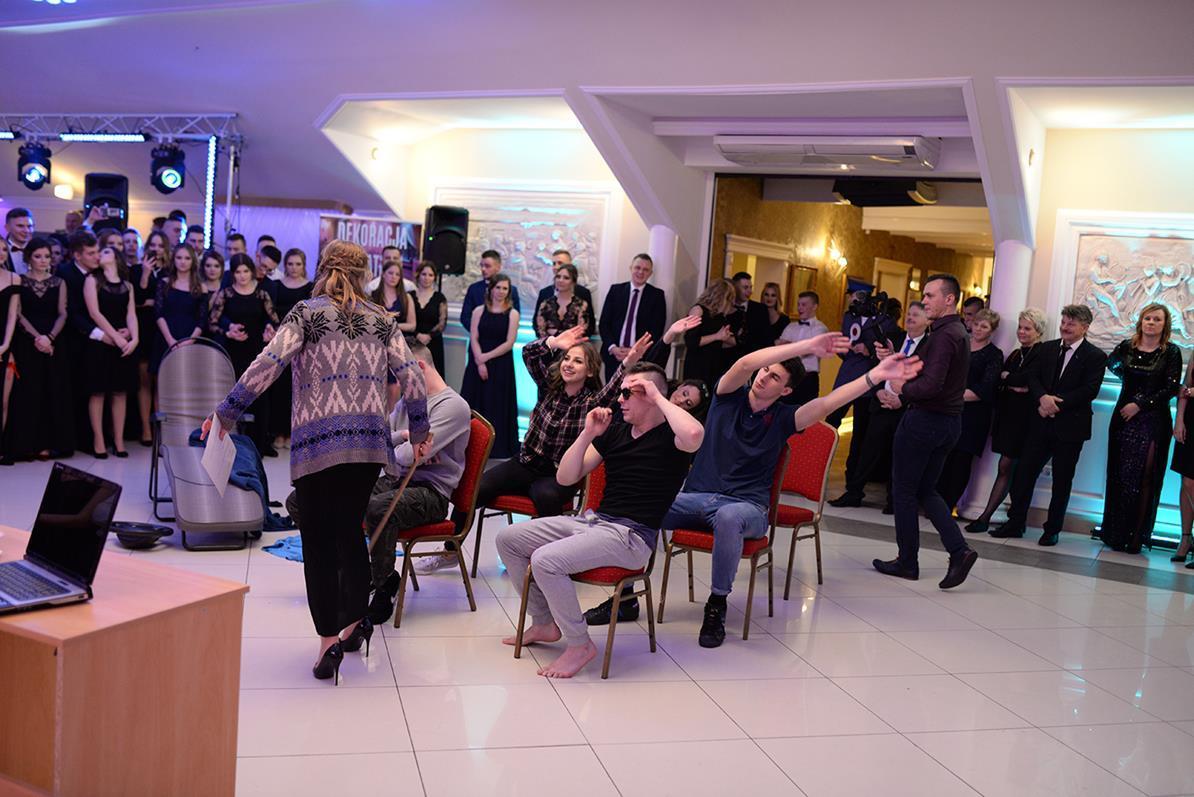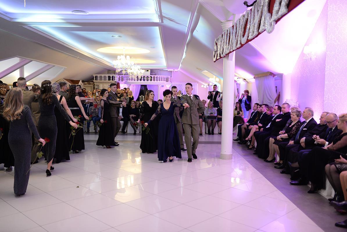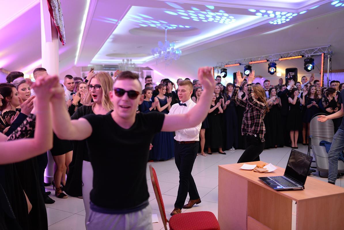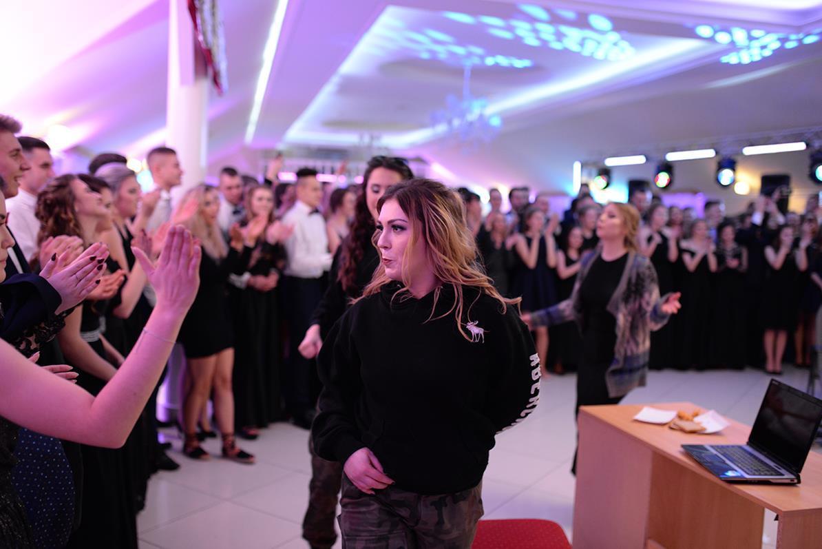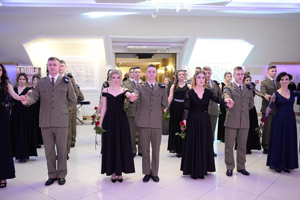 Następnie nasz narodowy taniec, wykonały wszystkie klasy maturalne. Po słowach: "Poloneza czas zacząć", kolejno klasa IIIA i VIOSSP, IIIB, IV technikum i IIIC z powagą i gracją ruszyły na parkiet. Występy wszystkich klas bardzo podobały się zgromadzonym, co zostało nagrodzone gromkimi brawami. Widać było zaangażowanie i trud, jakie młodzież włożyła w przygotowanie układów tanecznych. W tej pracy pomagała maturzystom Pani Magdalena Kujawska.