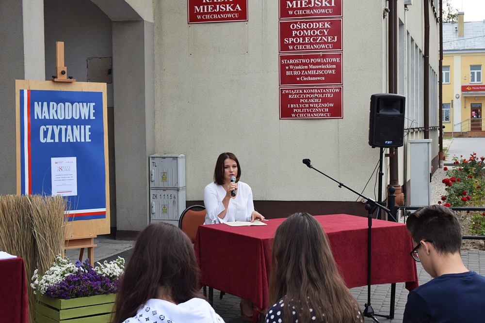 Jak co roku, przed wejściem do Urzędu Miejskiego odbyła się ciechanowiecka edycja akcji „Narodowego Czytania”. Dzisiejsze czytanie rozpoczęła sekretarz gminy Anna Czapkowska. Następnie fragmenty ośmiu lektur na ósme Narodowe Czytanie czytali m.in. uczniowie Szkoły Podstawowej oraz Zespołu Szkół Ogólnokształcących i Zawodowych, nauczyciele, pedagodzy, pracownicy Urzędu Miejskiego, Miejskiej Biblioteki Publicznej oraz mieszkańcy miasta i okolic.
