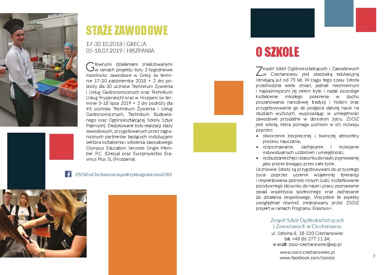 Zespół Szkół Ogólnokształcących i Zawodowych w Ciechanowcu w ramach konkursu Erasmus+ Kształcenie i Szkolenia Zawodowe, akcji 1 „Mobilność osób uczących się i kadry sektora Szkolnictwa Zawodowego" zrealizował na kwotę 148 479 Euro (640 000,00 zł) projekt pt. „Europejska Praktyka = Klucz do Rynku Pracy”, w ramach którego odbyły się staże zawodowe dla 75 uczniów i 7 nauczycieli na terenie Grecji i Hiszpanii.