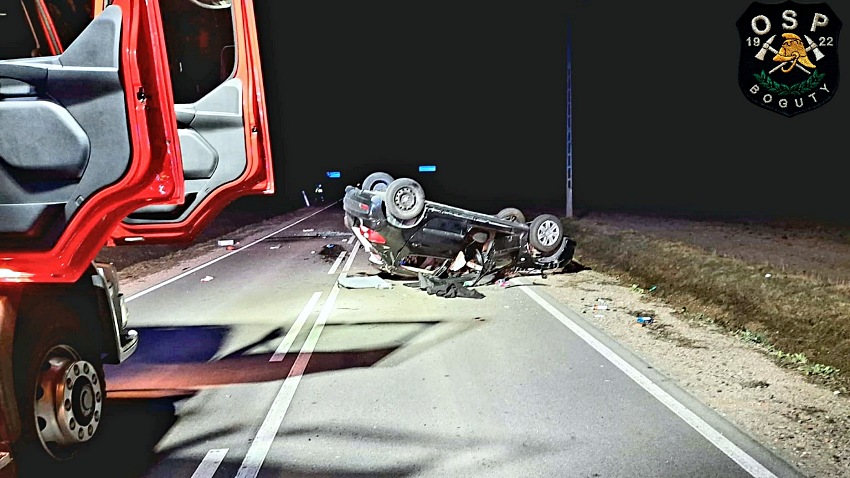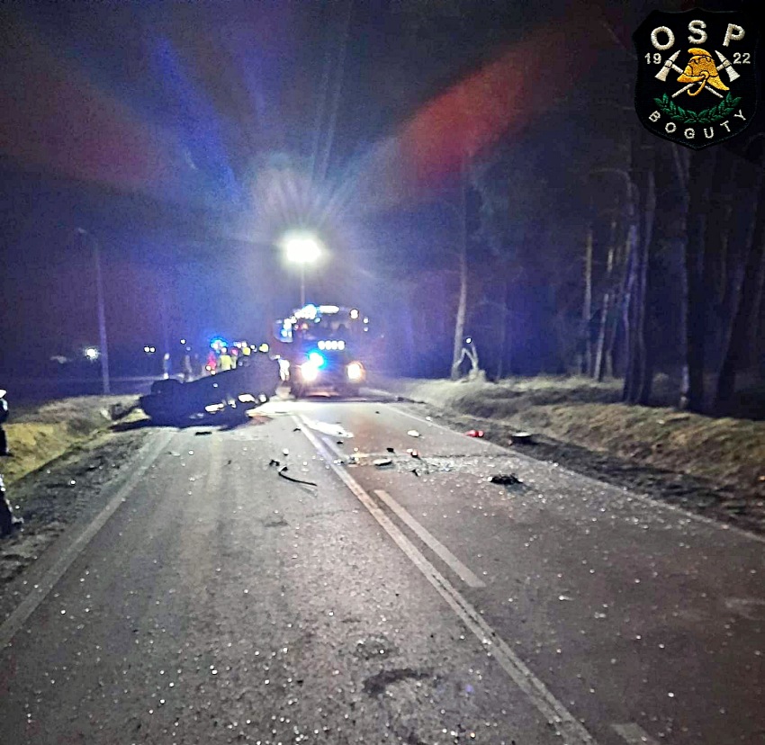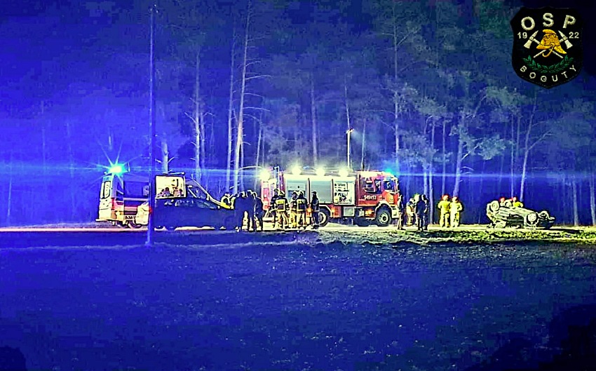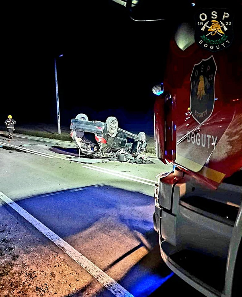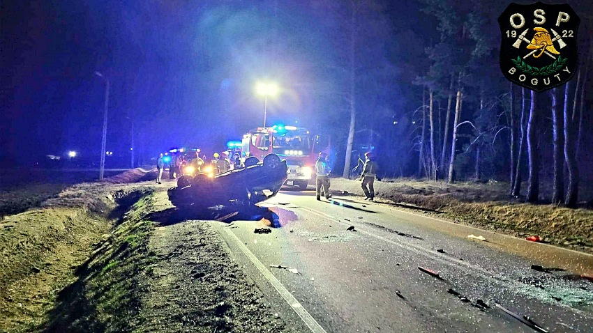 Jak informują strażacy z OSP Boguty-Pianki: W piątek 25 marca o godz. 22:15 nasza jednostka została zaalarmowana o wypadku na drodze wojewódzkiej 690, za miejscowością Boguty-Pianki, w kierunku Ciechanowca. Po dojechaniu zastępów straży na miejsce strażacy zastali samochód osobowy leżący na dachu na jezdni, a osoby które podróżowały pojazdem znajdowały się na zewnątrz. Działania strażaków polegały na zabezpieczeniu miejsca zdarzenia, odłączeniu akumulatora w pojeździe, udzieleniu pierwszej pomocy przedmedycznej osobom poszkodowanym oraz posprzątaniu jezdni. W wyniku wypadku jedna osoba została przewieziona do szpitala.