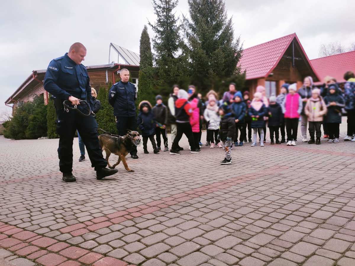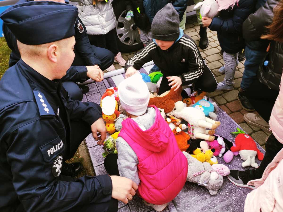 Uchodźcy z Ukrainy znajdują bezpieczne schronienie również na terenie powiatu wysokomazowieckiego. Tym razem do spotkania z osobami, które uciekły od wojennej rzeczywistości doszło w Ciechanowcu. Policjanci rozmawiali z nimi o bezpiecznym transporcie do wybranego miejsca pobytu. Wyczulali na ryzyko korzystania z transportu oferowanego przez przypadkowe osoby zalecając, aby o swoich planach informować opiekunów placówek, w których mieszkają. Mundurowi przestrzegali również przed przyjmowaniem ryzykownych ofert pracy, a także także przed przekazywaniem obcym osobom, które nie reprezentują państwowych i samorządowych instytucji, oryginałów dokumentów lub telefonów. Jeśli chodzi o najmłodszych, to czekał na nich szereg niespodzianek. Dzieci poznały policyjnego psa "Łapę", który w ciągu kilkunastu minut zaprezentował swoje umiejętności. Najmłodsi otrzymali również pluszaki przekazane przez policjantów z garnizonu podlaskiego, elementy odblaskowe oraz kolorowanki o tematyce bezpieczeństwa.