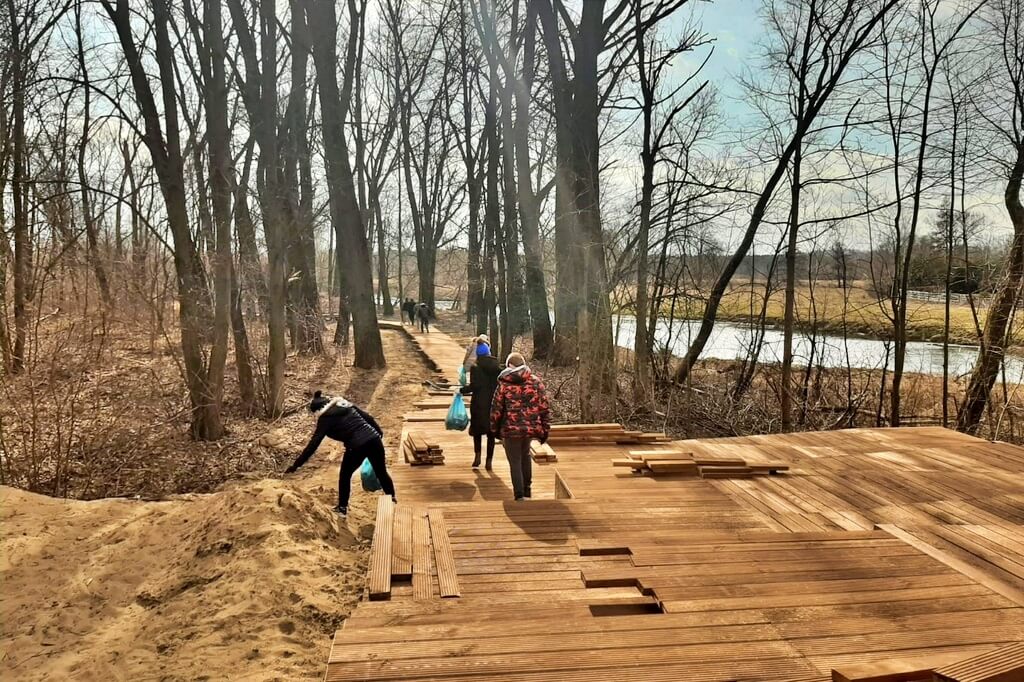 Wędkarze, strażacy, wolontariusze oraz pracownicy samorządowi z Burmistrzem Ciechanowca i Radnymi Rady Miejskiej - w sumie kilkadziesiąt osób sprzątało w sobotę 26 marca brzegi rzeki Nurzec i zalewu w Ciechanowcu.