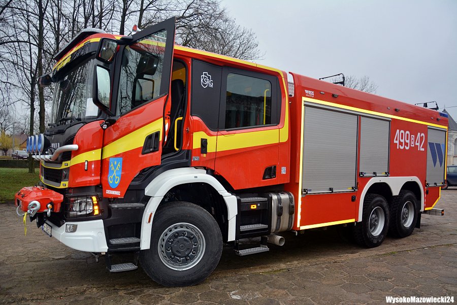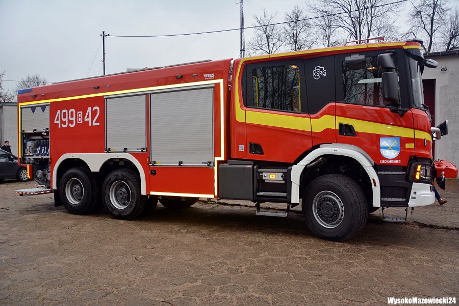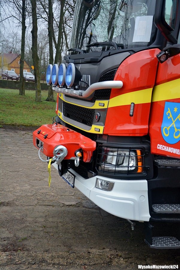 Ochotnicza Straż Pożarna w Ciechanowcu znacząco zwiększyła swoje możliwości ratowniczo-gaśnicze dzięki nabyciu nowoczesnego ciężkiego samochodu pożarniczego. Fabrycznie nowy pojazd marki Scania P410, z zaawansowanym napędem 6x6, został specjalnie wybrany, aby sprostać najtrudniejszym wyzwaniom podczas akcji ratowniczych. Wyjątkowe znaczenie ma zainstalowany w samochodzie zbiornik wody o imponującej pojemności 8400 litrów oraz autopompa, której wydajność sięga 6500 L/min, co stanowi kluczowe wsparcie w szybkim i efektywnym działaniu podczas pożarów i innych sytuacji kryzysowych.