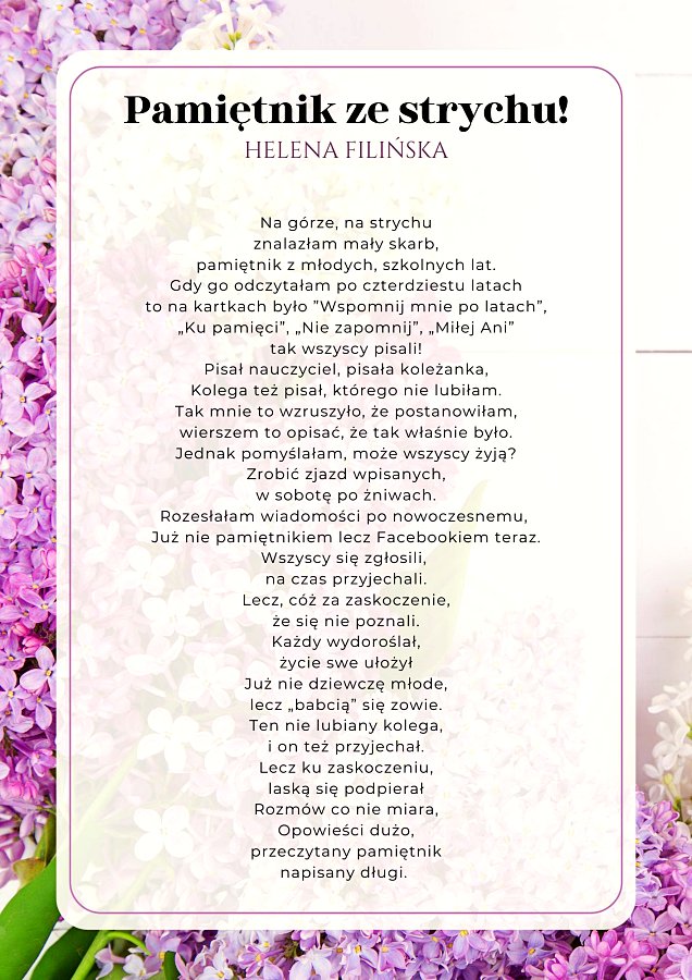- Wyróżnienie – Helena Filińska pseudonim Babcia za wiersz „Pamiętnik ze strychu”