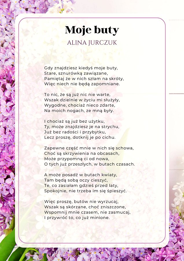 - I miejsce – Alina Jurczuk pseudonim Wiewiórka za wiersz „Moje buty”