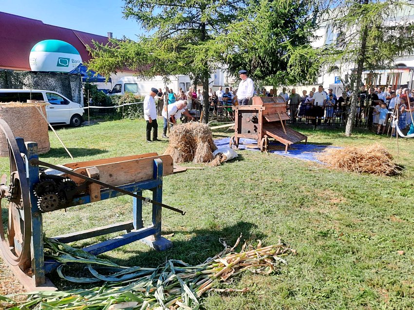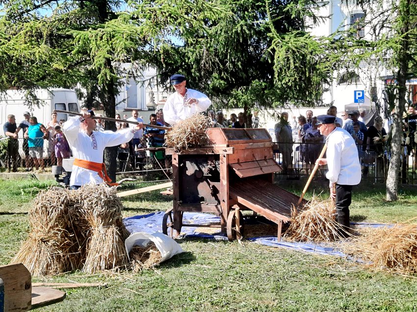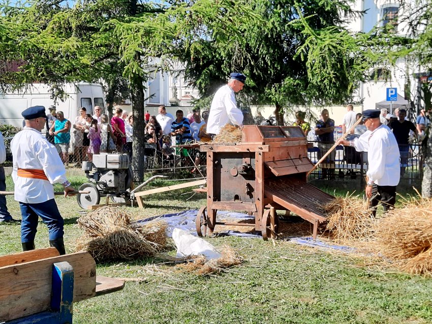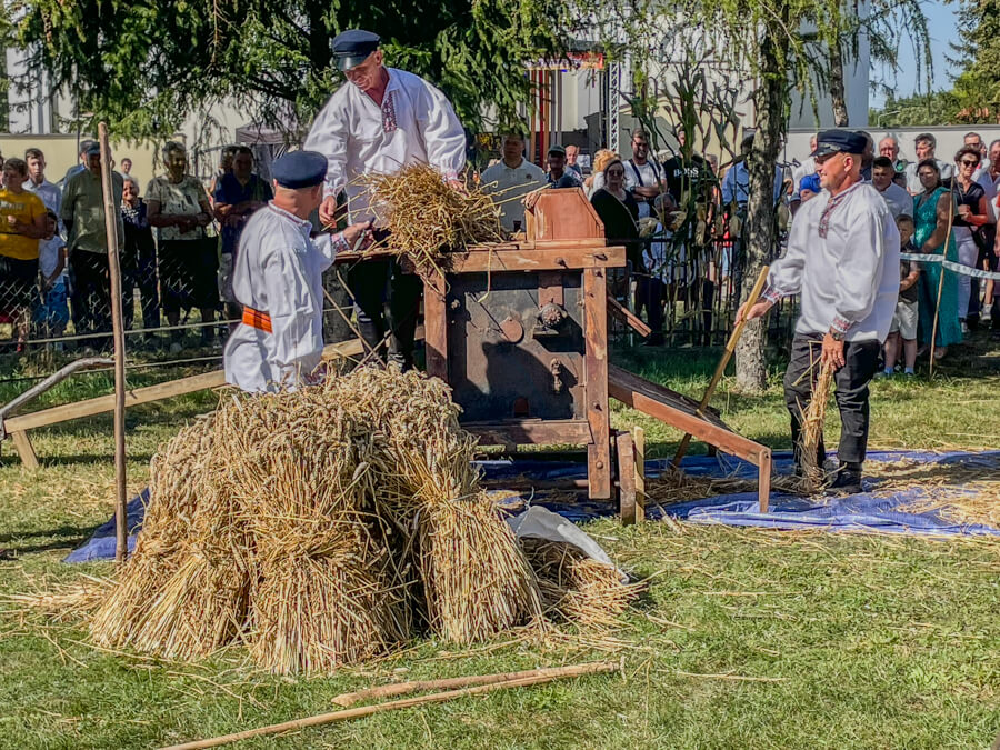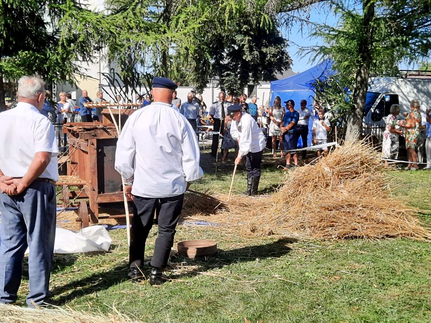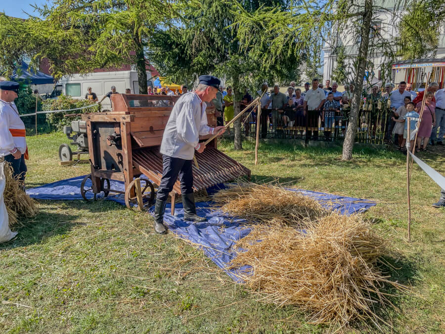 Jednym z najbardziej interesujących punktów programu były pokazy tradycyjnych metod młócenia zboża. Uczestnicy mieli niepowtarzalną okazję zobaczyć, jak dawniej odbywał się ten proces. Zaprezentowano młócenie za pomocą cepa - prostego, lecz skutecznego narzędzia, składającego się z dwóch połączonych ze sobą kijów. Demonstracja ta wzbudziła szczególne zainteresowanie wśród młodszego pokolenia, dla którego takie metody są już historią.