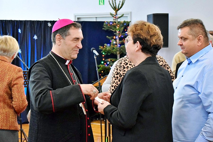 Uczestnicy podzielili się opłatkiem i złożyli sobie życzenia. Spotkanie było okazją do rozmów i wymiany doświadczeń. Na zakończenie biskup podziękował wszystkim za zaangażowanie w życie parafialne i społeczne.