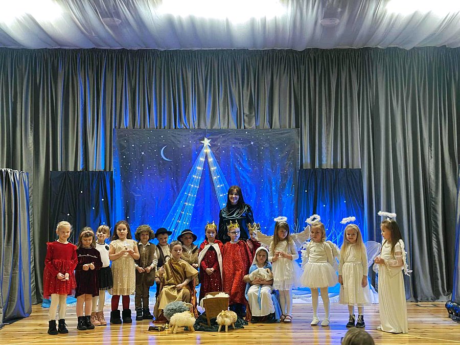 W Ciechanowieckim Ośrodku Kultury i Sportu odbył się występ grupy teatralnej z Przedszkola w Ciechanowcu. Dzieci zaprezentowały przedstawienie jasełkowe, w którym wcieliły się w różne role - aniołów w białych sukienkach i aureolach, trzech króli w czerwonych płaszczach i złotych koronach oraz pasterzy w tradycyjnych strojach.