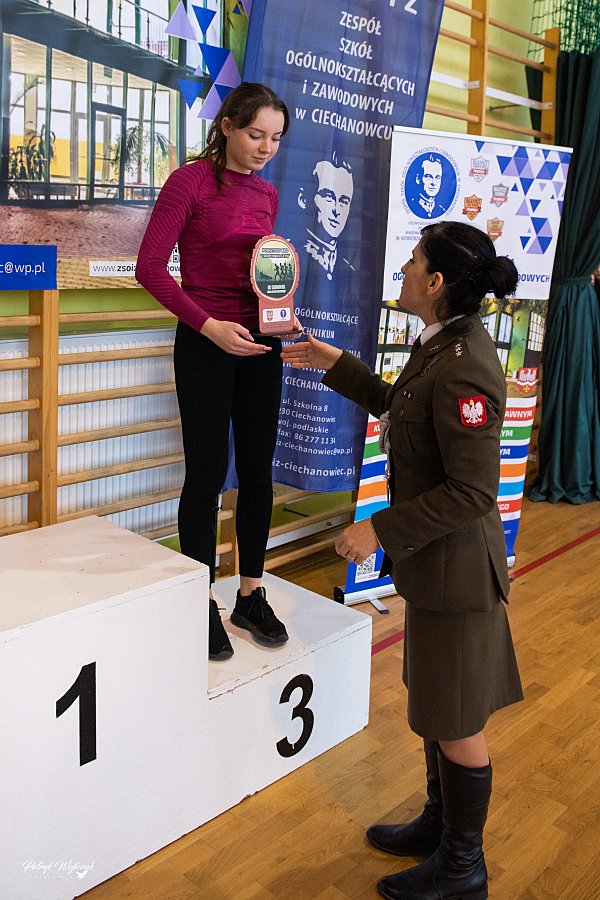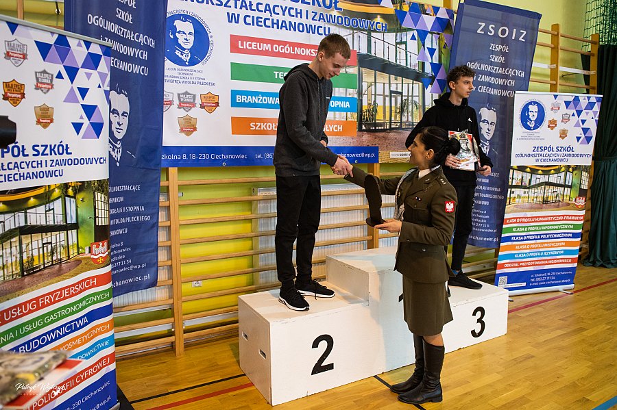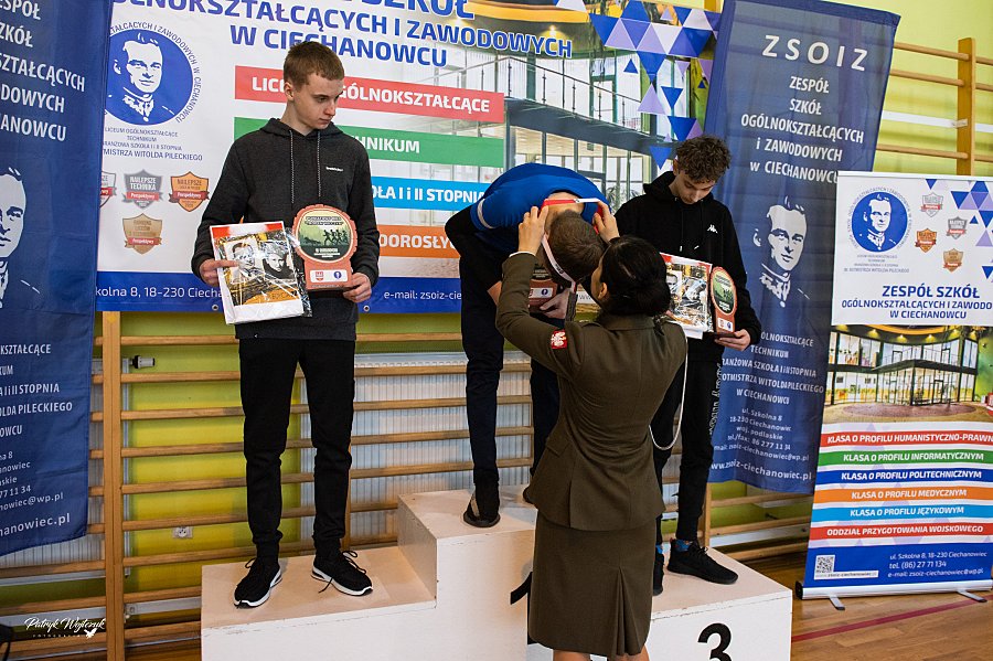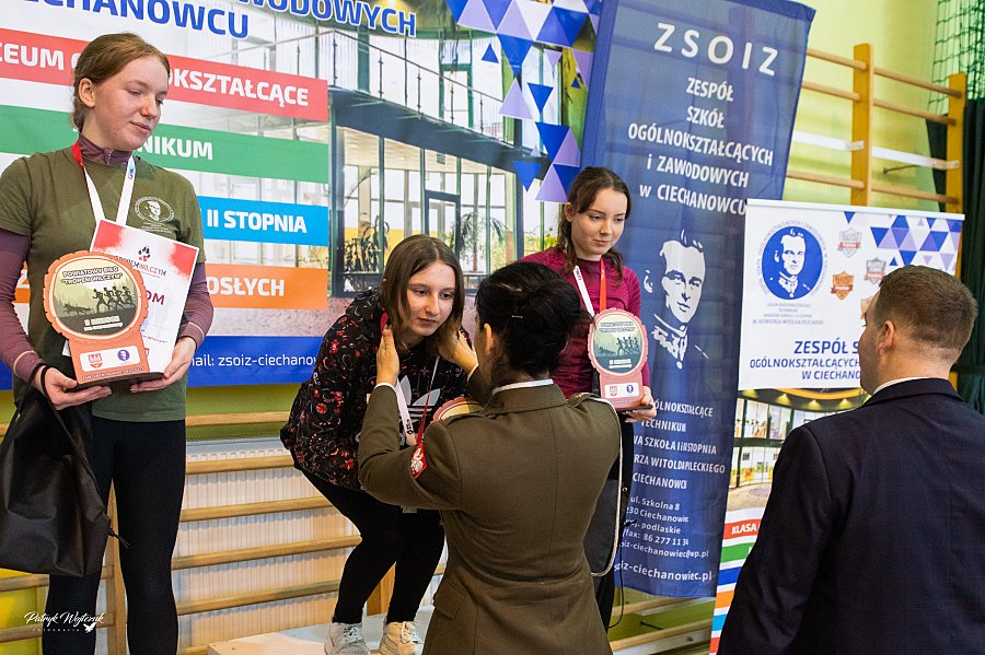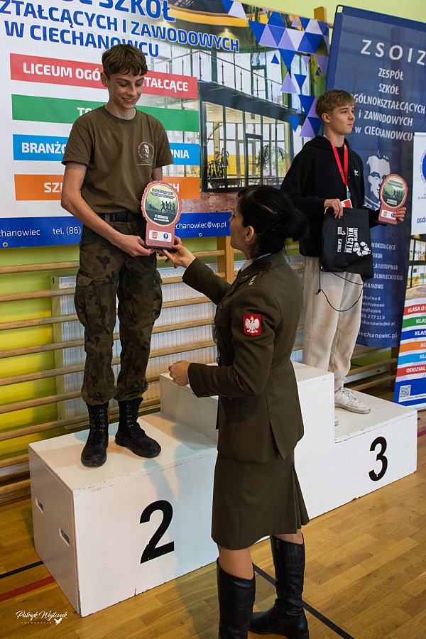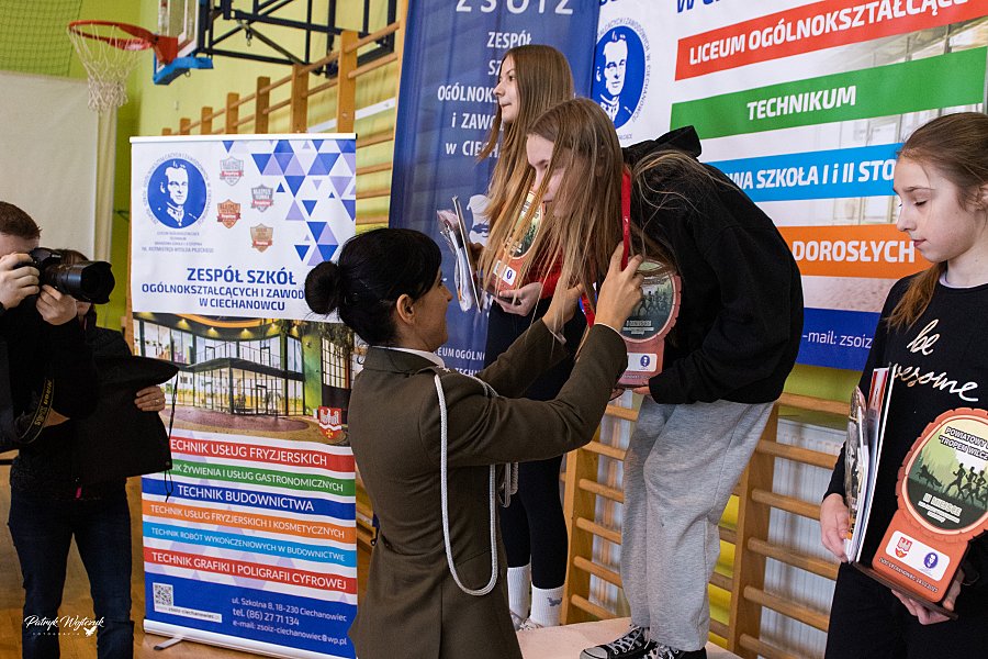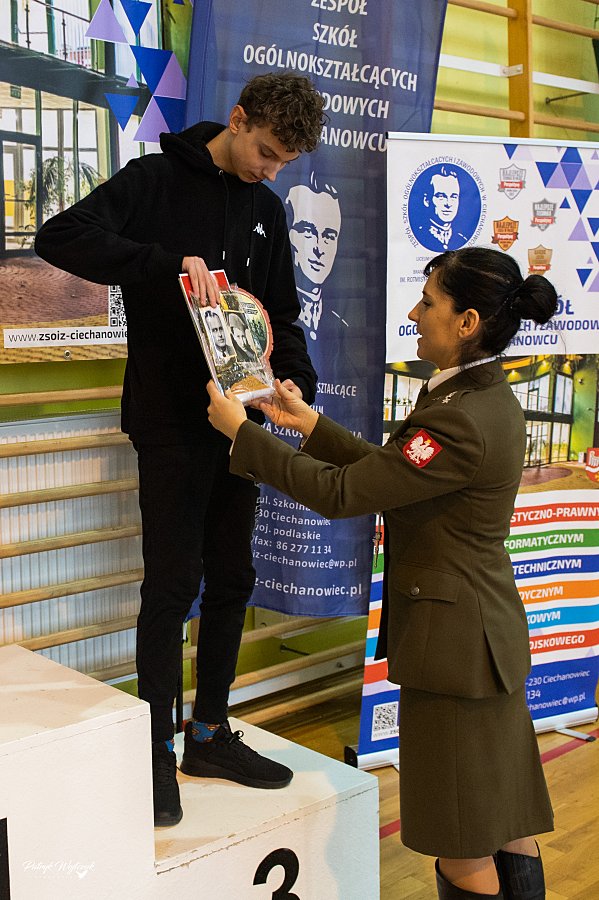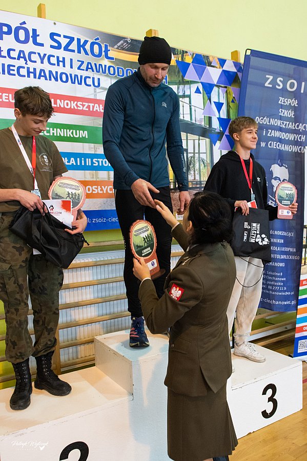 Po zakończeniu biegów uczestnicy mieli okazję zobaczyć pokaz musztry paradnej przygotowany przez uczniów klas Oddziałów Przygotowania Wojskowego. Następnie odbyło się uroczyste wręczenie pucharów, medali i nagród rzeczowych dla najlepszych zawodników. Na zakończenie na wszystkich czekał ciepły posiłek ufundowany przez ZSOiZ w Ciechanowcu.