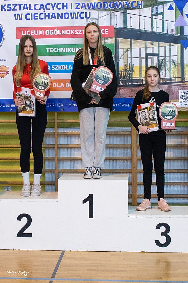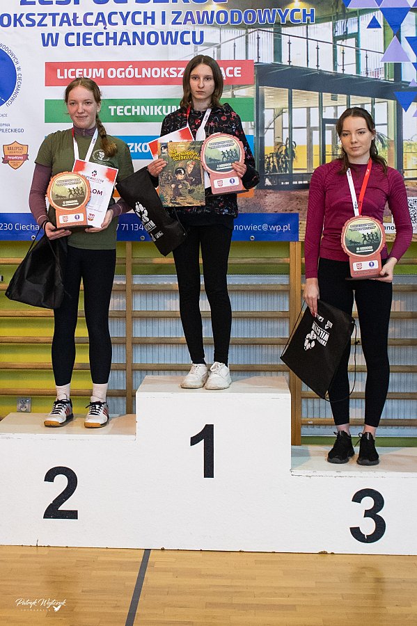 W kategorii kobiet na tym samym dystansie podium należało wyłącznie do uczennic ZSOiZ w Ciechanowcu. Pierwsze miejsce zajęła Karolina Oksztul, drugie Magdalena Zalewska, a trzecie Maja Czarnecka.