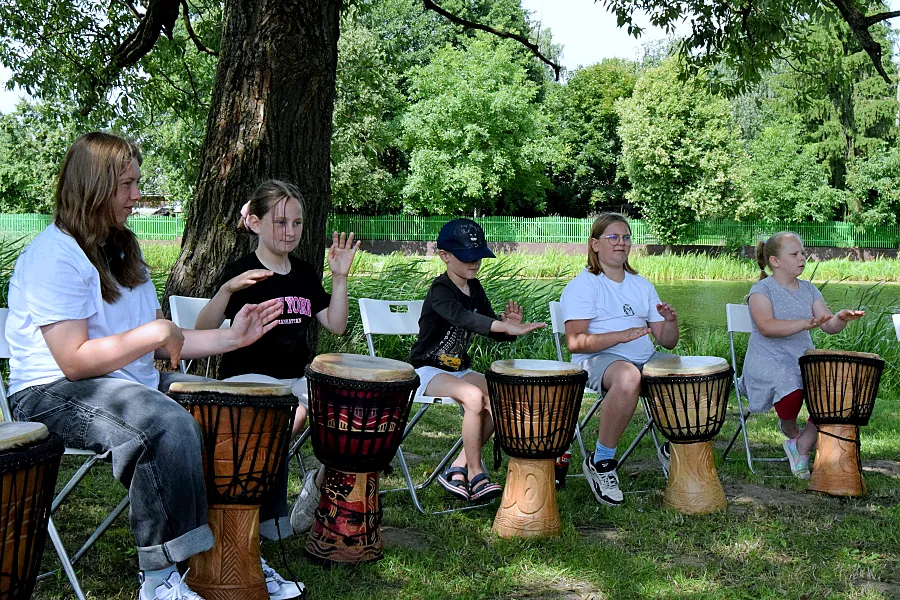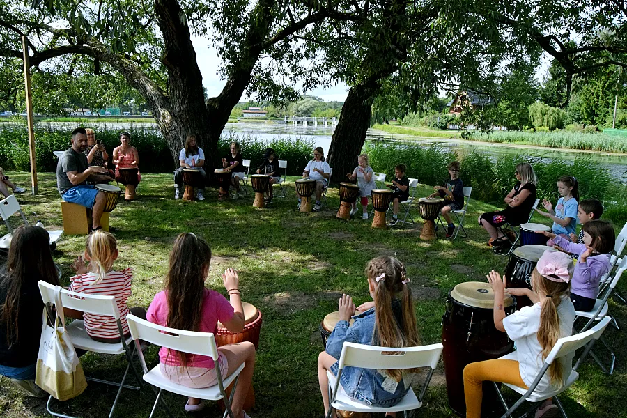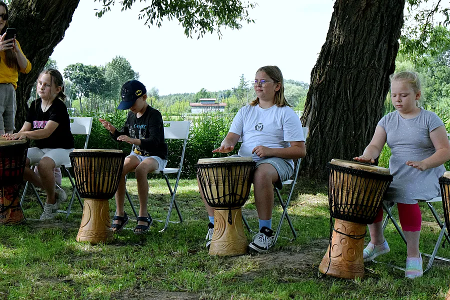 W plenerowej scenerii "Wyspy", w cieniu drzew nad ciechanowieckim zalewem, 7 sierpnia rozbrzmiały rytmiczne dźwięki bębnów. Odbyły się tam warsztaty gry na tych instrumentach, które poprowadził Kamil Bukowski, bębniarz i artysta znany szerszej publiczności z programu "Mam Talent". Wydarzenie, odbywające się w formule otwartego kręgu, przyciągnęło mieszkańców w każdym wieku.