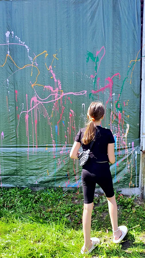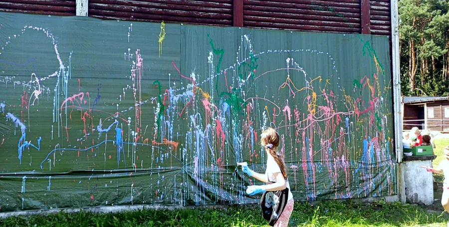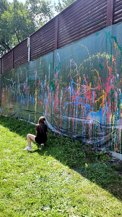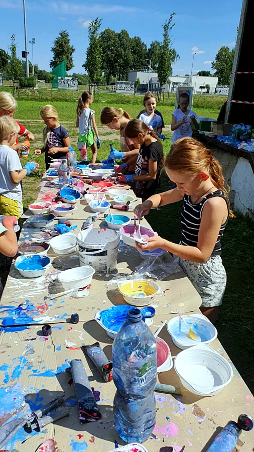 Technika "splatter", polegająca na swobodnym rozpryskiwaniu farby, pozwoliła na stworzenie dynamicznego i pełnego ekspresji, wspólnego dzieła. Centralnym punktem akcji było pokazanie, że każdy może być artystą.