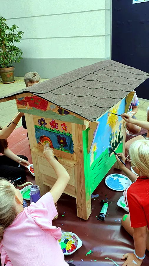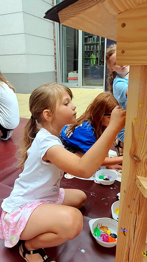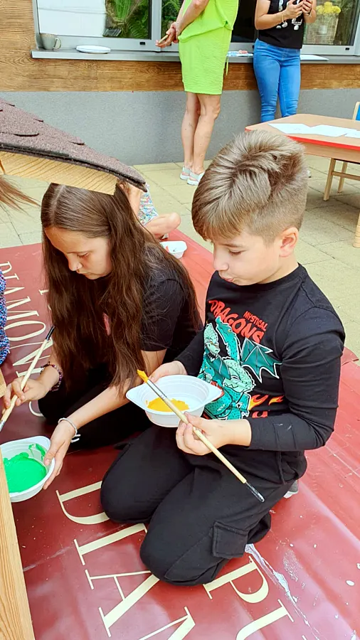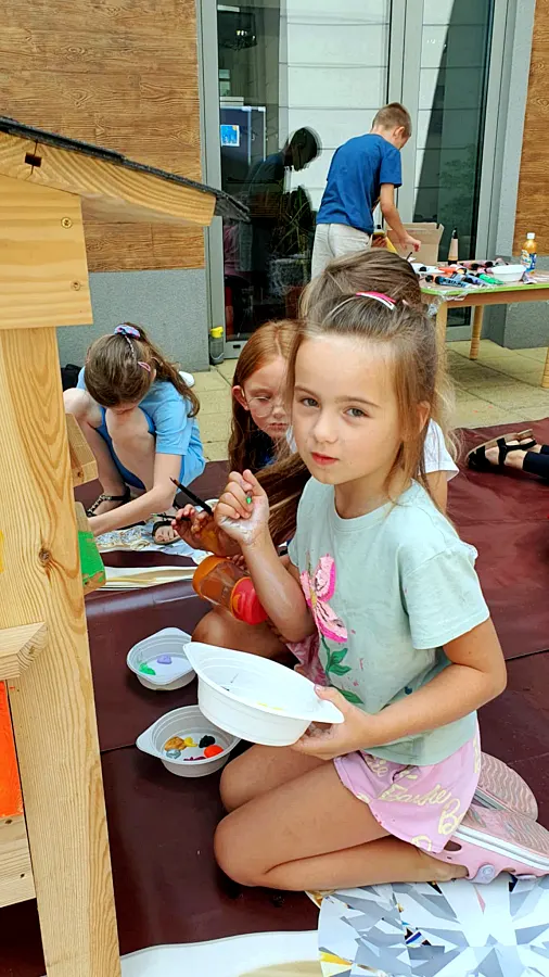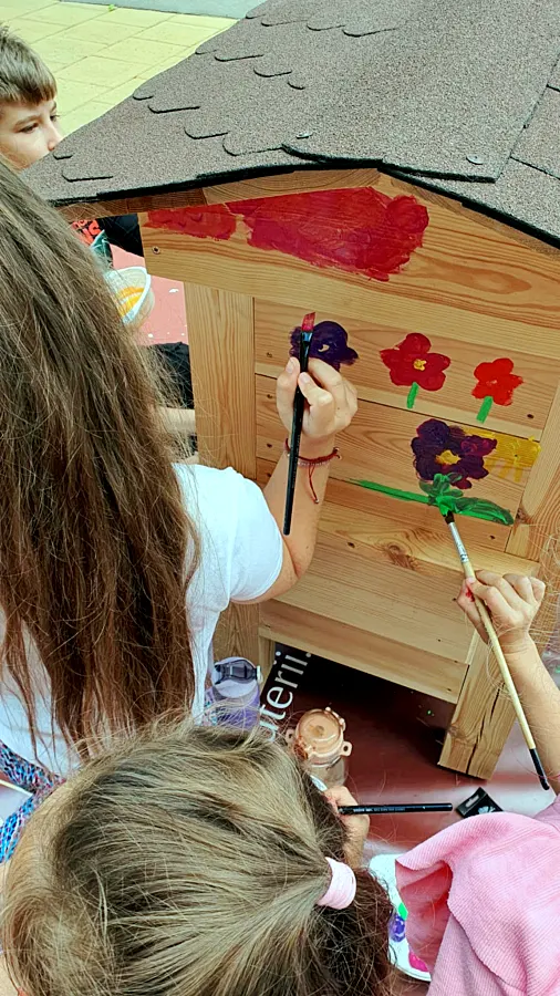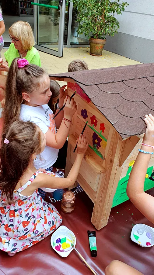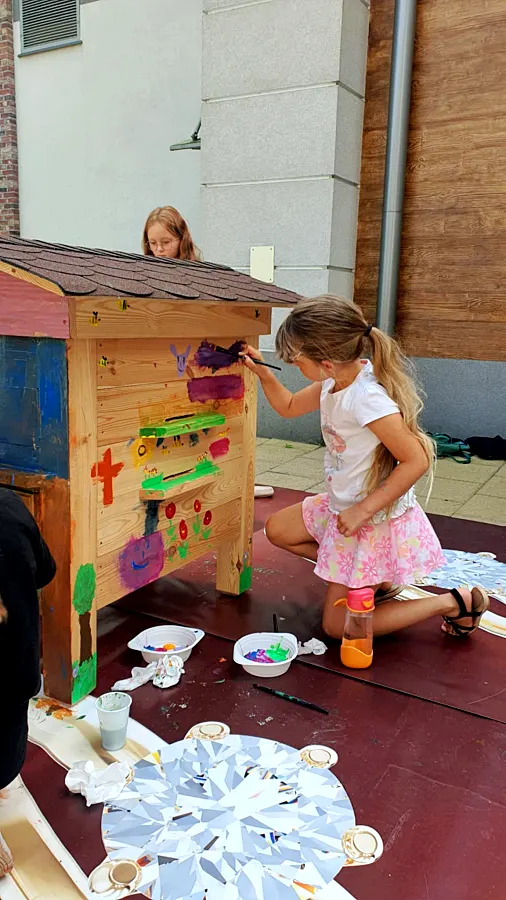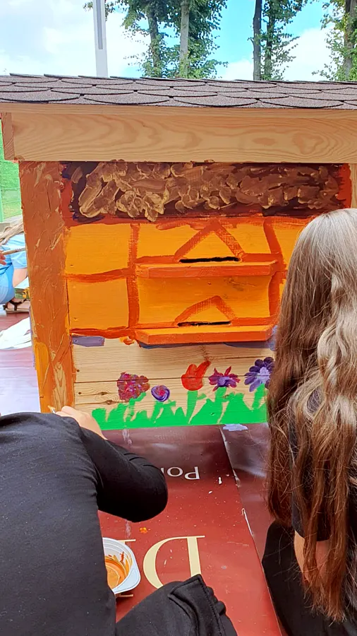Podczas warsztatów sala biblioteczna zamieniła się w pracownię artystyczną, gdzie dzieci mogły puścić wodze fantazji. Drewniane ule, które już wkrótce staną się prawdziwymi domami dla pszczelich rodzin, pokryły się niepowtarzalnymi wzorami i kolorowymi kompozycjami. Każdy z uczestników miał okazję stworzyć małe dzieło sztuki, które będzie nie tylko ozdobą, ale przede wszystkim funkcjonalnym schronieniem dla tych pożytecznych owadów.