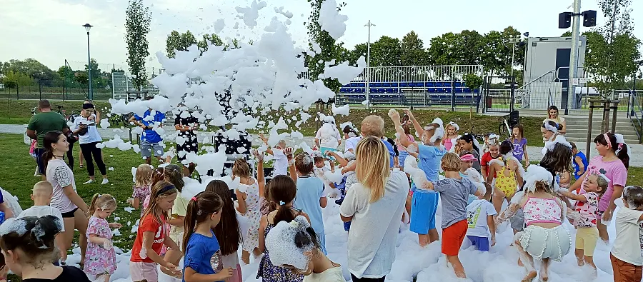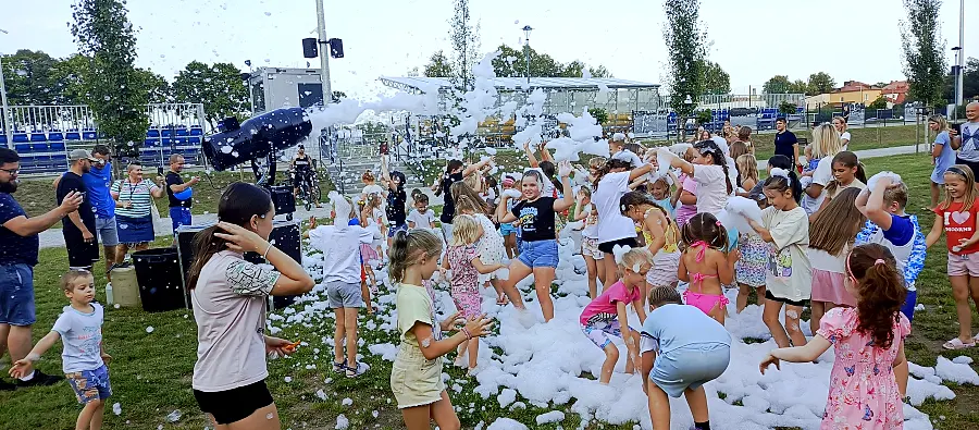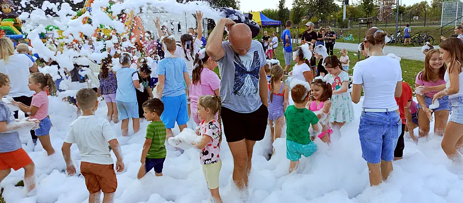 Kulminacyjnym punktem programu była Piana Party. Zabawa w chmurach piany okazała się największą atrakcją popołudnia, wywołując entuzjazm i szerokie uśmiechy na twarzach najmłodszych. Wydarzenie było okazją do aktywnego spędzenia czasu na świeżym powietrzu i radosnego pożegnania kończącego się tygodnia.