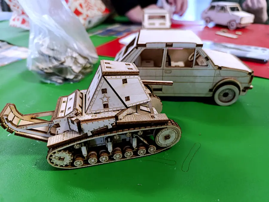W piątek, 23 stycznia, Gminny Ośrodek Kultury w Czyżewie przygotował dla dzieci i młodzieży wyzwanie wymagające skupienia i cierpliwości. Na warsztat wzięto drewniane modele wykonane techniką cięcia laserowego. Każdy z uczestników, pod okiem instruktorów, składał miniaturową wersję legendarnego Fiata 126p, powszechnie znanego jako „Maluch”, lub modelu czołgu SU-18.