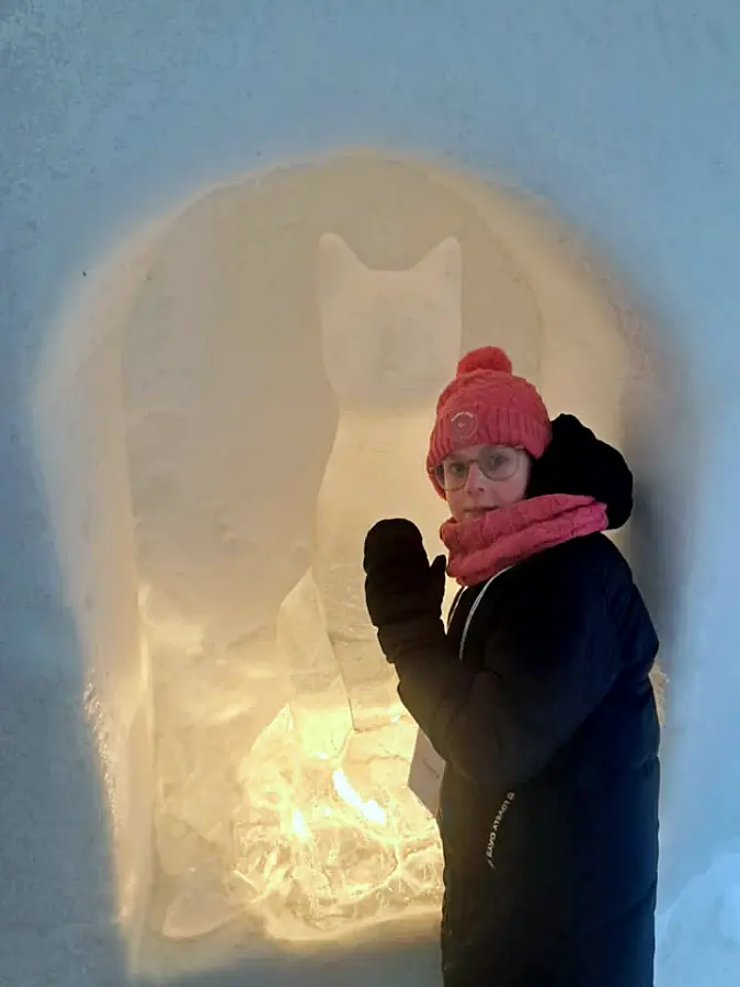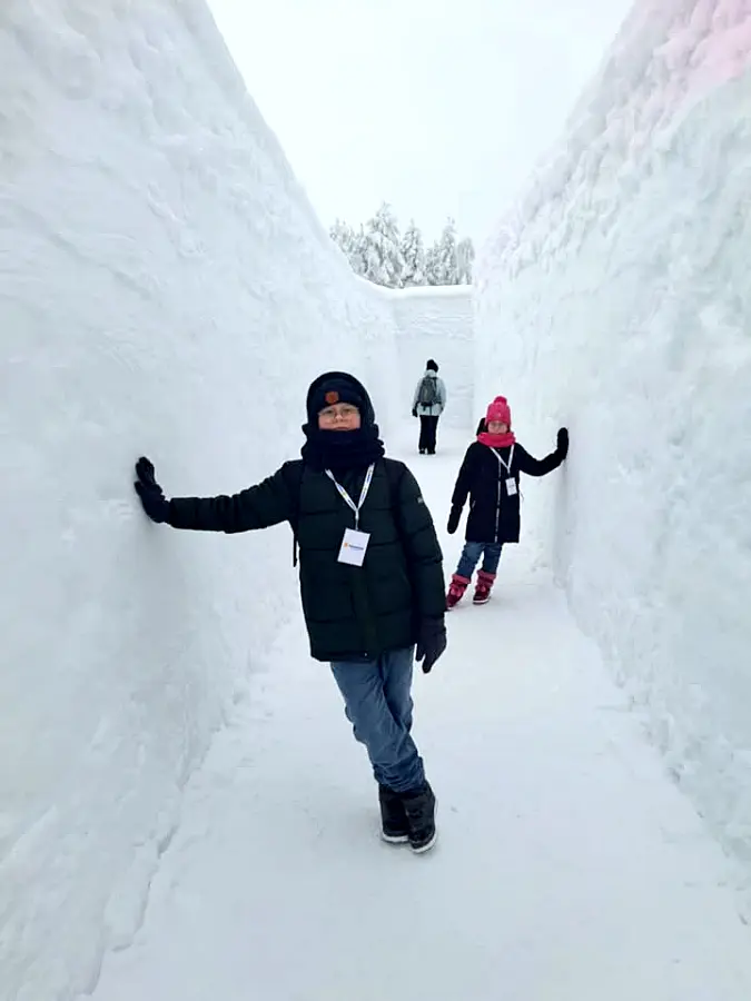 Kolejnym punktem wycieczki była wizyta w krainie zbudowanej z lodu i śniegu. Uczestnicy mogli korzystać z lodowych zjeżdżalni oraz oglądać konstrukcje wykonane w całości z zamarzniętej wody.