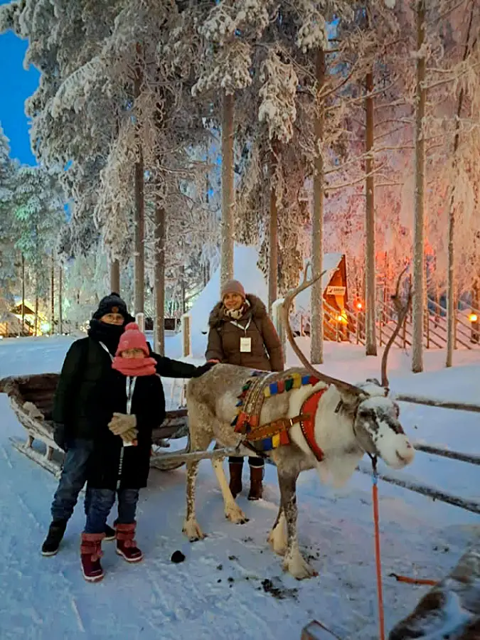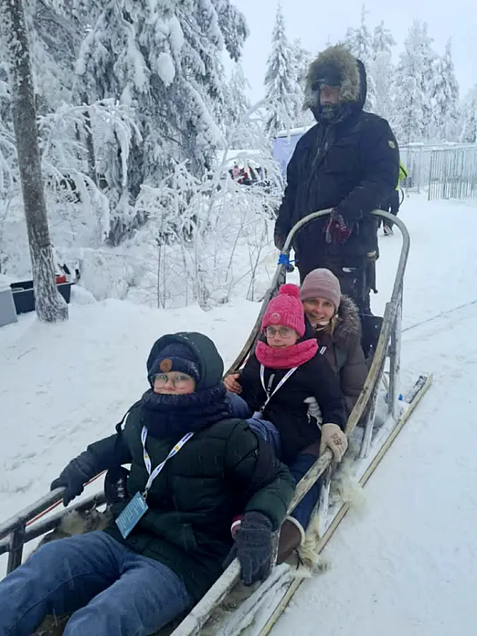 Zwieńczeniem dnia była przejażdżka saniami ciągniętymi przez renifery. Odbyła się ona już po zmroku, co pozwoliło na obserwację iluminacji świetlnych zdobiących wioskę. Wyjazd zakończył się czasem wolnym przeznaczonym na zakup pamiątek.