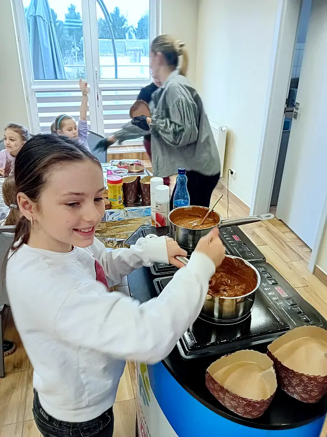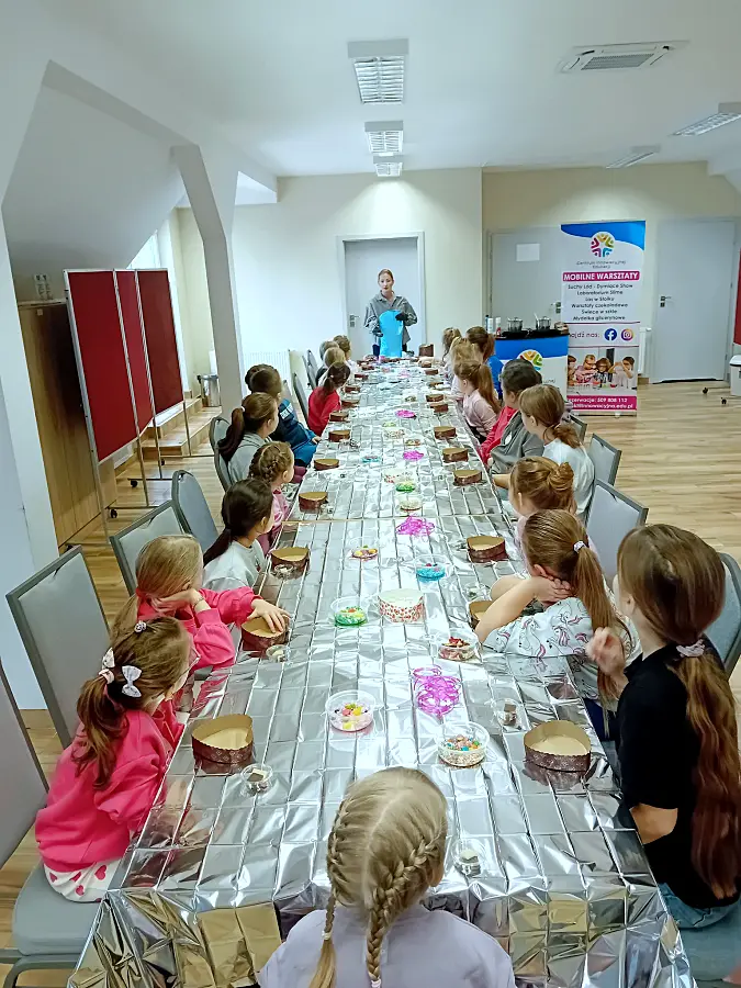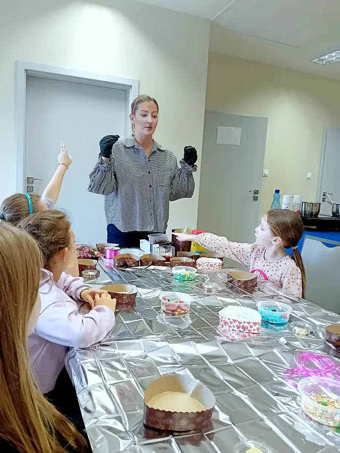 Zadaniem uczestników było wykonanie własnej tabliczki czekolady w kształcie serca. Proces twórczy obejmował wylewanie masy do form, a następnie jej dekorowanie. Na stołach nie zabrakło różnorodnych dodatków, wiórków kokosowych, kolorowych posypek, a nawet jadalnego złota, które nadawało wypiekom ekskluzywnego charakteru. Każde dziecko otrzymało również pudełeczko degustacyjne.