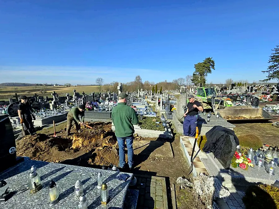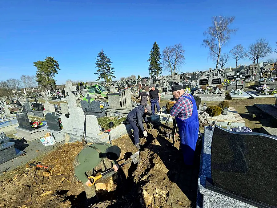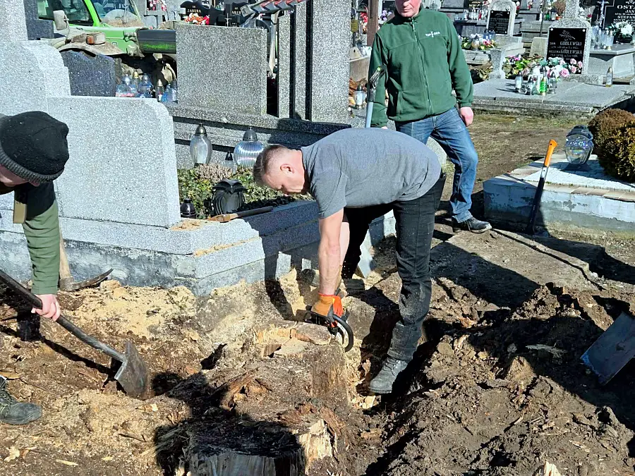 W ramach podjętych działań przedstawiciele miejscowej Ochotniczej Straży Pożarnej zajęli się uporządkowaniem terenu wokół miejsca spoczynku kapłana. Głównym zadaniem, z jakim zmierzyli się w strażacy, było usunięcie uciążliwych pozostałości po starym drzewie. Dzięki wspólnemu wysiłkowi i pracy fizycznej, druhów udało się sprawnie wykarczować karpę po dawnej lipie.