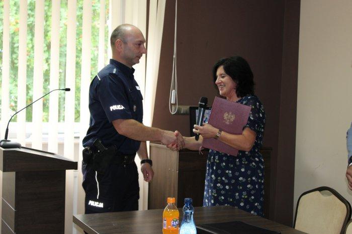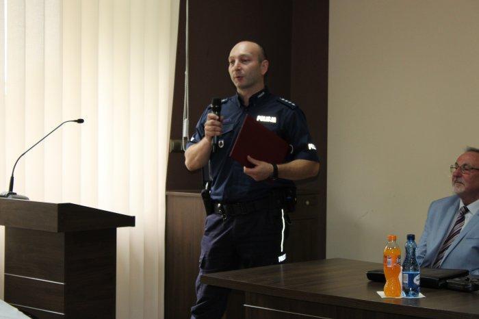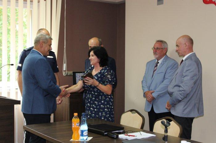 Na sesji Rady Miejskiej w dniu 28.06.2018 r. odchodzący kierownik otrzymał z rąk Pani Burmistrz pamiątkową statuetkę wraz z podziękowaniami za wzorową pracę na rzecz poprawy bezpieczeństwa mieszkańców gminy i współpracę z samorządem oraz życzenia pomyślnego realizowania pasji i zamiłowań na gruncie osobistym i rodzinnym.