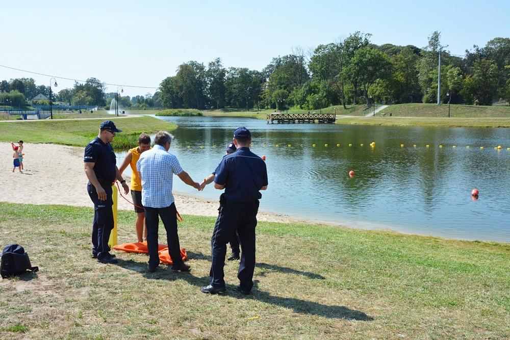 Mieszkańcy Czyżewa i okolic, wypoczywający na czyżewskiej plaży miejskiej, są już zapewne przyzwyczajeni do widoku policjantów i organizowanych przez nich działań. Celem profilaktycznych przedsięwzięć prowadzonych przez służby mundurowe jest zwiększenie świadomości społecznej związanej z zagrożeniami występującymi podczas sezonu letniego. W piątkową akcję zaangażował się także ratownik z miejskiej plaży, który chętnie udzielił instruktażu funkcjonariuszom z zakresu obsługi bojki samopływającej SP1 oraz działania pasa ratowniczego. Funkcjonariusze przypominali plażowiczom o podstawowych zasadach bezpiecznego wypoczynku nad wodą oraz apelowali o rozwagę i ostrożność. Wszystko po to, aby zwiększyć bezpieczeństwo osób wypoczywających nad wodą oraz zapobiegać przypadkom utonięć.