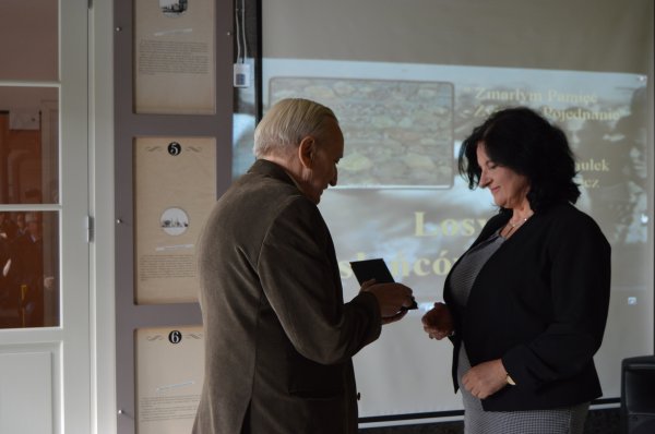 Po złożeniu wieńców Przemysław Wasilewski zaprosił wszystkich do siedziby Muzeum Ziemi Czyżewskiej, gdzie obecnych gości - w tym m.in. Ks. Kan. Eugeniusza Sochackiego, Ks. Proboszcza Antoniego Loro, Prezesa czyżewskiego koła NSZ Franciszka Przeździeckiego oraz dyrektorów, kierowników, nauczycieli i uczniów - przybyłych gości powitała Anna Kazimierczuk- instruktor GOK-u w Czyżewie. Słowo wstępu do zebranych gości skierowała Burmistrz Anna Bogucka, która podziękowała gościom za przybycie oraz nadmieniła, iż rolą młodych pokoleń jest dbanie o pamięć nt. tragicznego losu Sybiraków. Wspomniała też tragiczną historię Polski zdradzonej dwukrotnie 1-go oraz 17-go września. To właśnie agresja ZSRR na Polskę w dniu 17.09.1939 zapoczątkowała dalsze tragiczne losy zesłańców Sybiru Głos zabrał również Ks. kan. Eugeniusz Sochacki, który przypomniał, iż kościół oraz wierni zawsze modlą się za Sybiraków oraz wspominają z szacunkiem Ich poświęcenie za miłość do Ojczyzny i ofiarę z życia jaką złożyli. Janusz Marciniak - Prezes Związku Sybiraków Koło Praga- Południe wręczył Pani Burmistrz pamiątkowy medal z okazji 90-tej rocznicy powstania Związku Sybiraków i 30-tej jego reaktywacji.