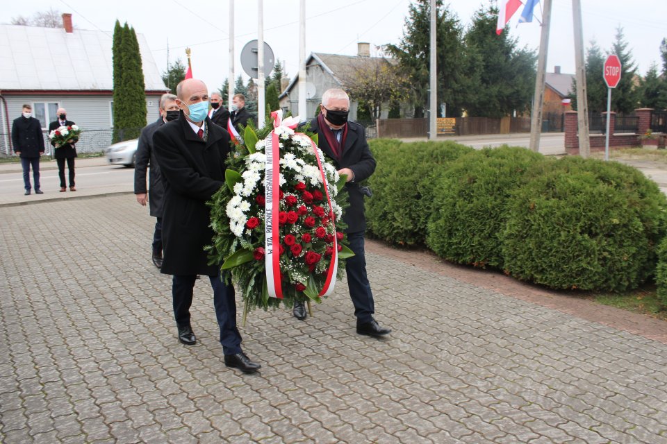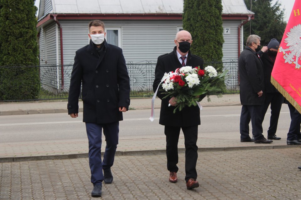 Po mszy świętej Zastępca Burmistrza Czyżewa, Przedstawiciele Rady Miejskiej w Czyżewie oraz Przedstawiciele Koła Czyżew Związku Żołnierzy Narodowych Sił Zbrojnych Okręg Łomża we wspólnym przemarszu udali się pod Pomnik Niepodległości, aby złożyć kwiaty w hołdzie poległym za wolność Ojczyzny.