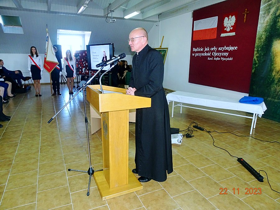 Uroczystość w ZSOiZ im. Stefana Kardynała Wyszyńskiego miała bogaty program. Najpierw uczniowie przedstawili zgromadzonym sylwetkę i przesłanie błogosławionego Stefana Wyszyńskiego. Następnie odbył się koncert patriotyczny w wykonaniu Gminnego Zespołu Eufonia, idealnie wpisujący się w tematykę uroczystości.