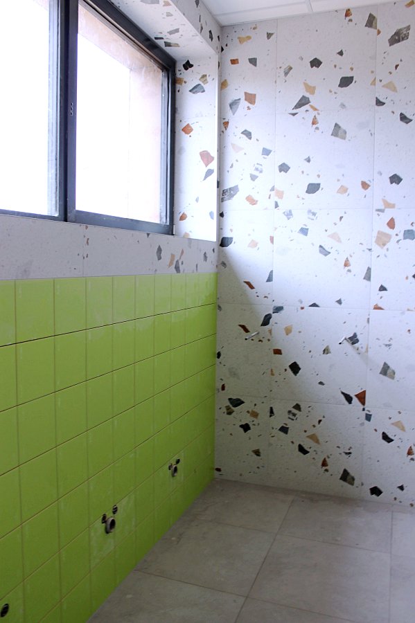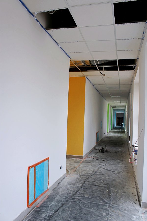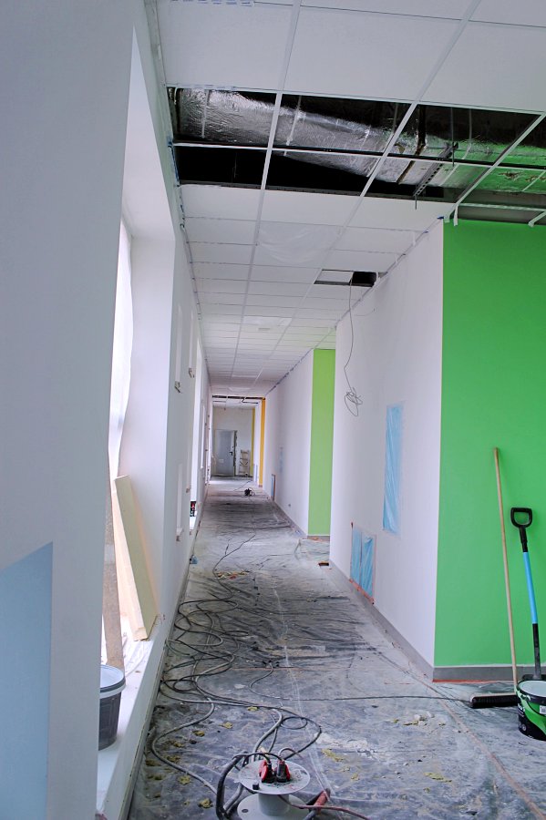 Nowe przedszkole z każdym dniem staje się bardziej atrakcyjne. Sale przedszkolne są przestronne i jasne, a przy każdej z nich znajdują się łazienki i pomieszczenia magazynowe. Duże okna, sięgające niemal do podłogi, umożliwią najmłodszym obserwowanie otaczającego je świata. Łazienki zaprojektowano tak, aby kolorystycznie współgrały z salami przedszkolnymi, co zapewnia estetyczną spójność wnętrz.