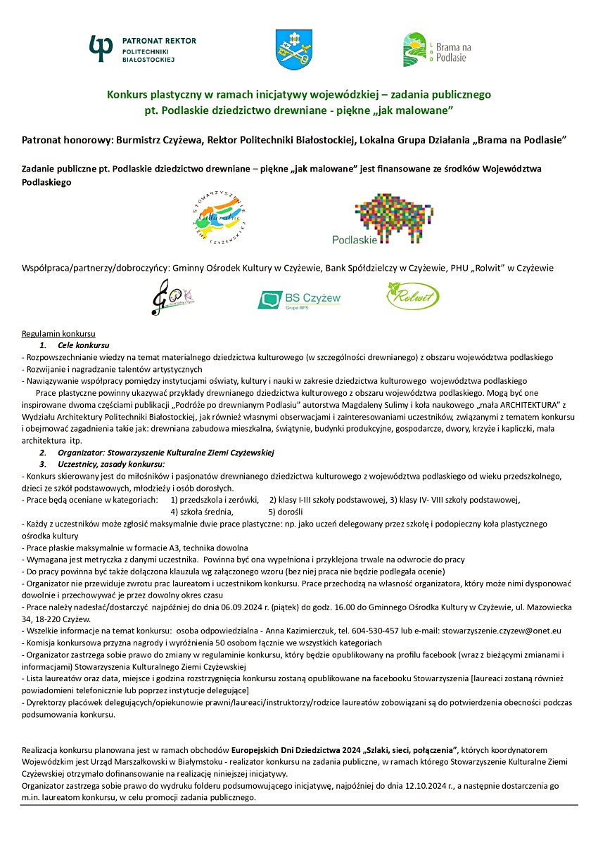 Inicjatywa ta wpisuje się w obchody Europejskich Dni Dziedzictwa 2024, których tegoroczne hasło brzmi "Szlaki, sieci, połączenia". Konkurs ma na celu popularyzację wiedzy o materialnym dziedzictwie kulturowym Podlasia, ze szczególnym uwzględnieniem unikalnej architektury drewnianej.