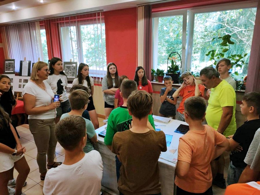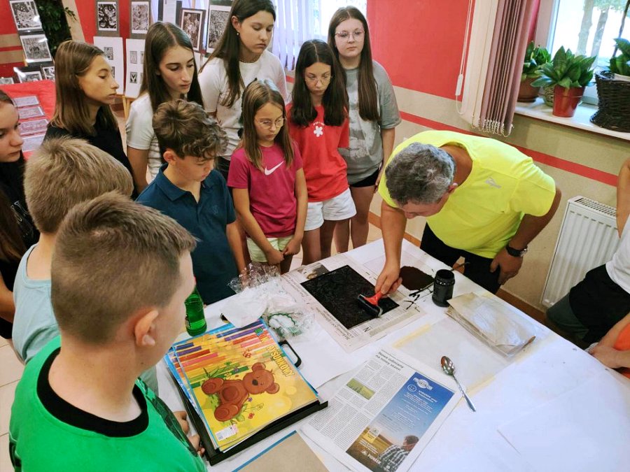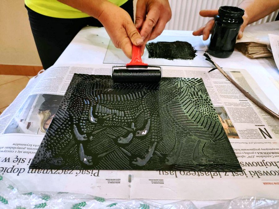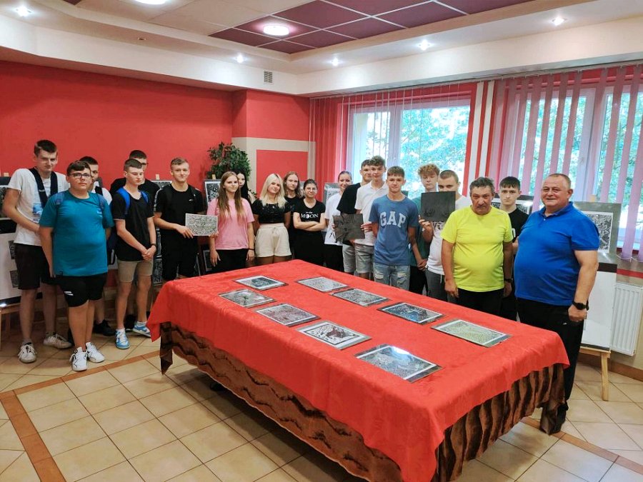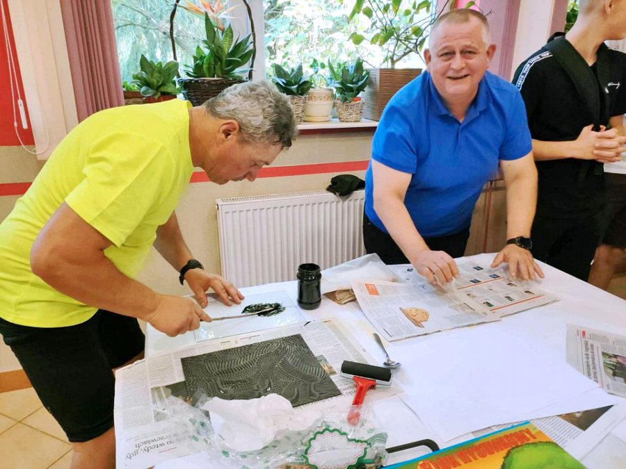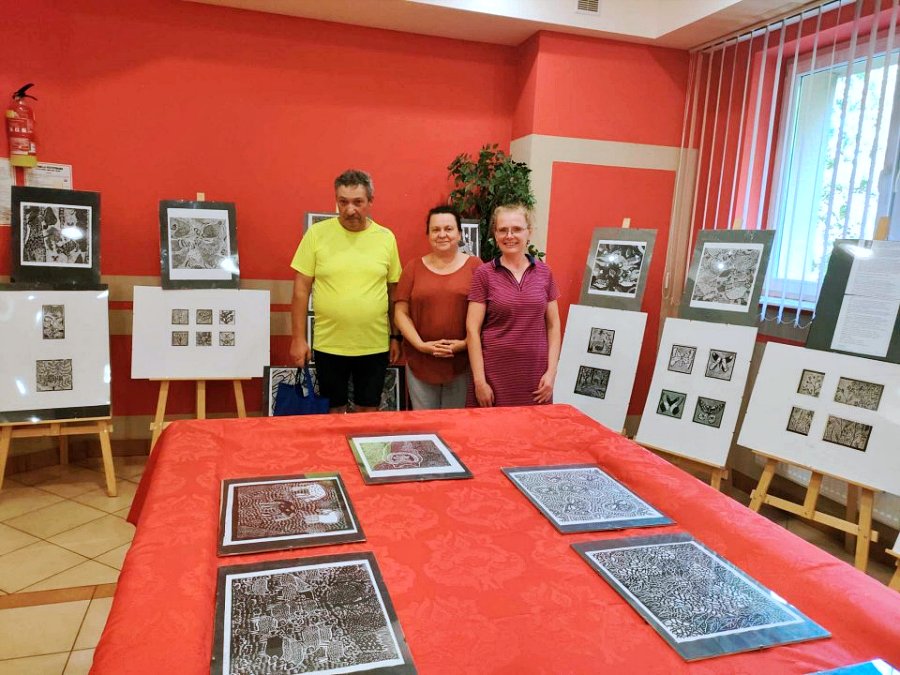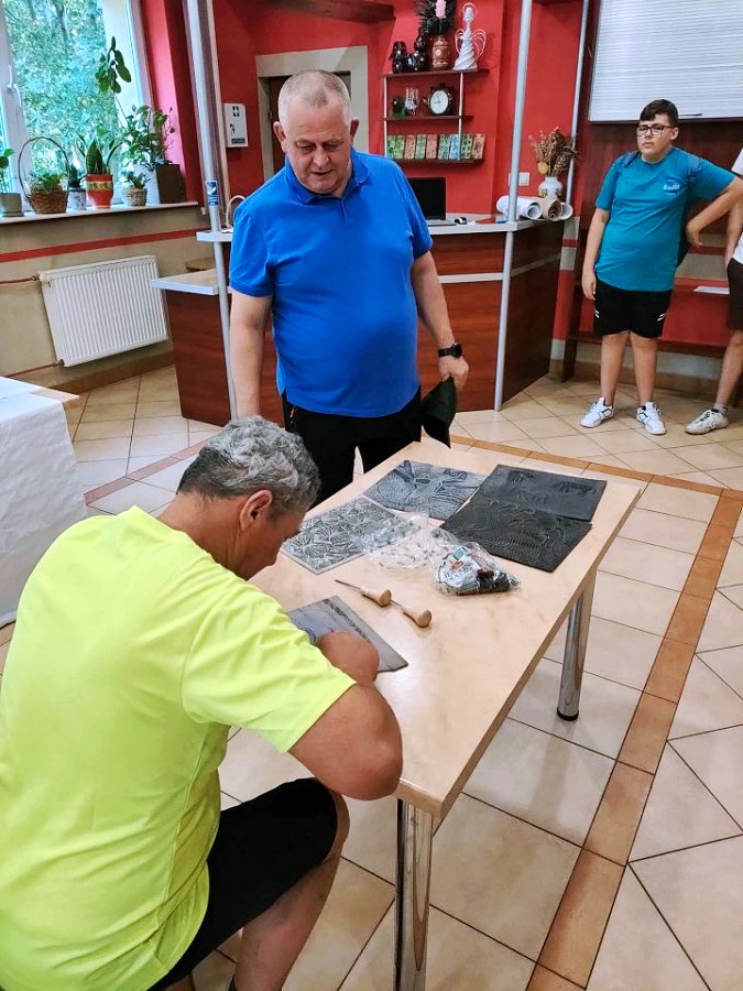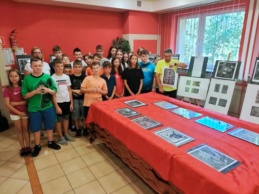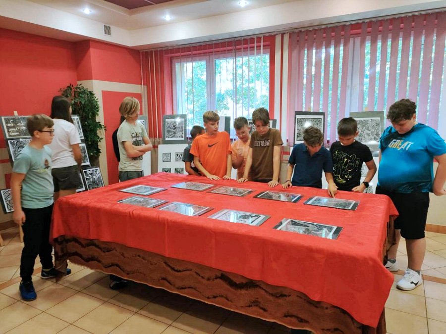 Wydarzenie zorganizowano w ramach trwającej od 21 sierpnia wystawy prac artysty, która jest dostępna dla zwiedzających w "kawiarence" GOK-u do 11 września. Jednak dzisiejsze spotkanie miało charakter szczególny - młodzi uczestnicy mogli nie tylko obejrzeć gotowe dzieła, ale także na żywo obserwować proces powstawania linorytu.