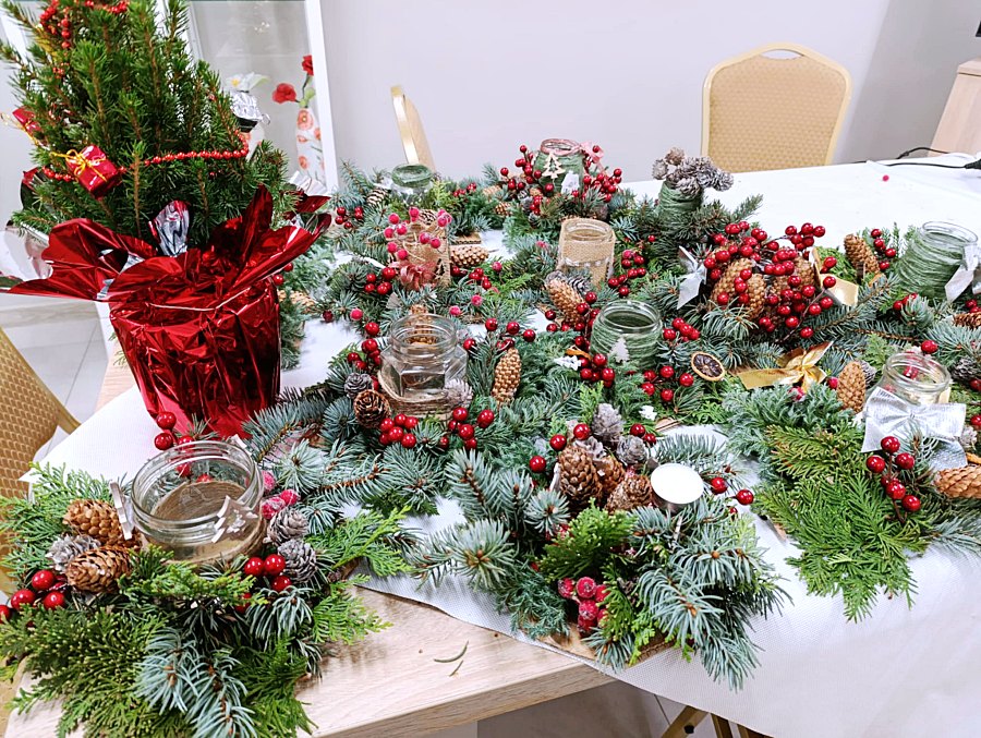 Seniorzy mieli okazję poznać techniki wykonywania stroików świątecznych, które mogą wykorzystać do dekoracji swoich domów w okresie Bożego Narodzenia. Praktyczne zajęcia pozwoliły uczestnikom rozwinąć zdolności manualne i kreatywność w tworzeniu świątecznych ozdób.