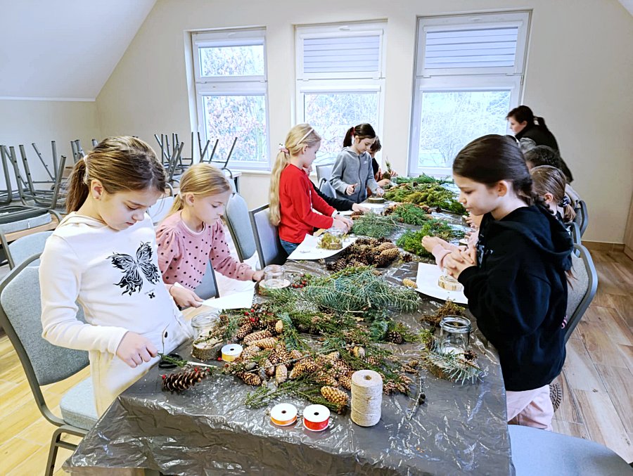 Podczas warsztatów zatytułowanych "Świąteczny stroik prosto z lasu" uczestnicy mieli okazję stworzyć własne bożonarodzeniowe dekoracje wykorzystując materiały pochodzące z lasu. Warsztaty poprowadziła Iga Kunicka z Nadleśnictwa Rudka.