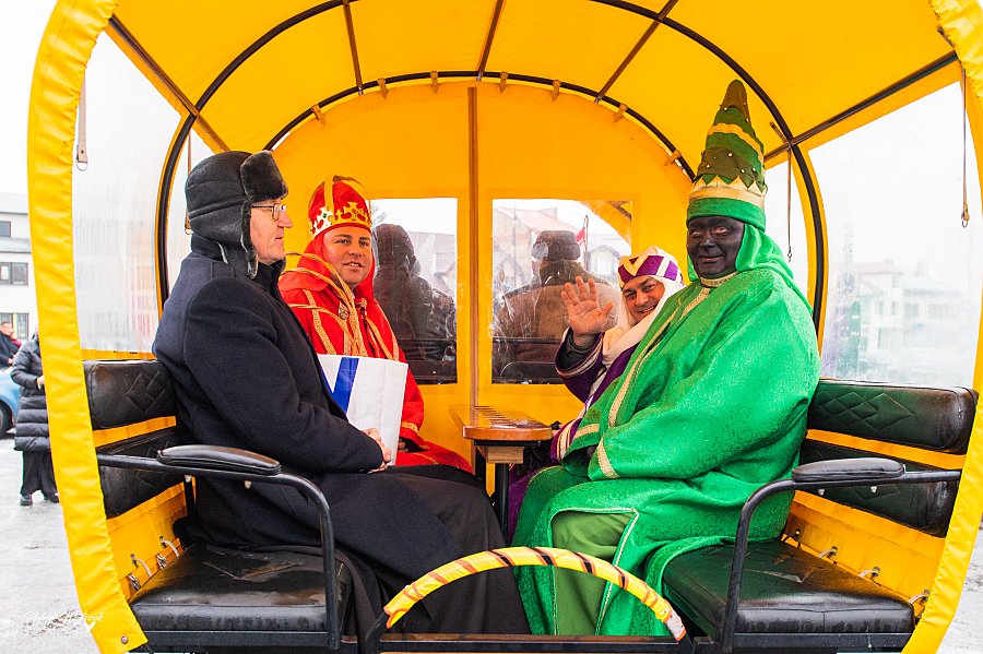 Po nabożeństwie ulicami miasta wyruszył barwny korowód, którego początek zapowiadali jeźdźcy na koniach. Za nimi podążały ozdobne bryczki, a jedną z nich jechali Trzej Królowie. W tym roku w gronie monarchów nastąpiła zmiana - do dwóch stałych odtwórców ról królewskich, radnych czyżewskich Remigiusza Zaremby i Mariusza Słowickiego, dołączył debiutujący w tej roli dyrektor Zespołu Szkół Ogólnokształcących i Zawodowych w Czyżewie Przemysław Uszyński.
