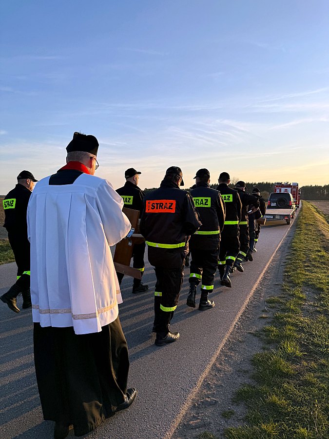Bezpieczeństwo uczestników zapewniały jednostki Ochotniczej Straży Pożarnej z kilku miejscowości: Dąbrowy Moczydeł, Dąbrowy Łazy, Dąbrowy Nowa Wieś, Dąbrowy Dzięciel oraz Kaczyn Herbasy. Strażacy nie tylko dbali o zabezpieczenie trasy i płynność ruchu drogowego, ale również aktywnie uczestniczyli w nabożeństwie, pomagając nieść krzyż.
