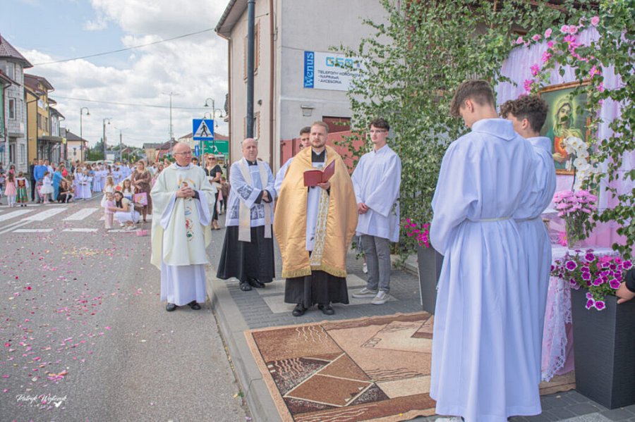 Procesja wyruszyła z lokalnego kościoła parafialnego i przeszła wyznaczoną trasą przez centrum miejscowości. Wierni gromadzili się przy czterech ołtarzach polowych, które zostały przygotowane na trasie przemarszu. Każdy z ołtarzy był ozdobiony kwiatami i białymi tkaninami, zgodnie z liturgiczną tradycją święta.