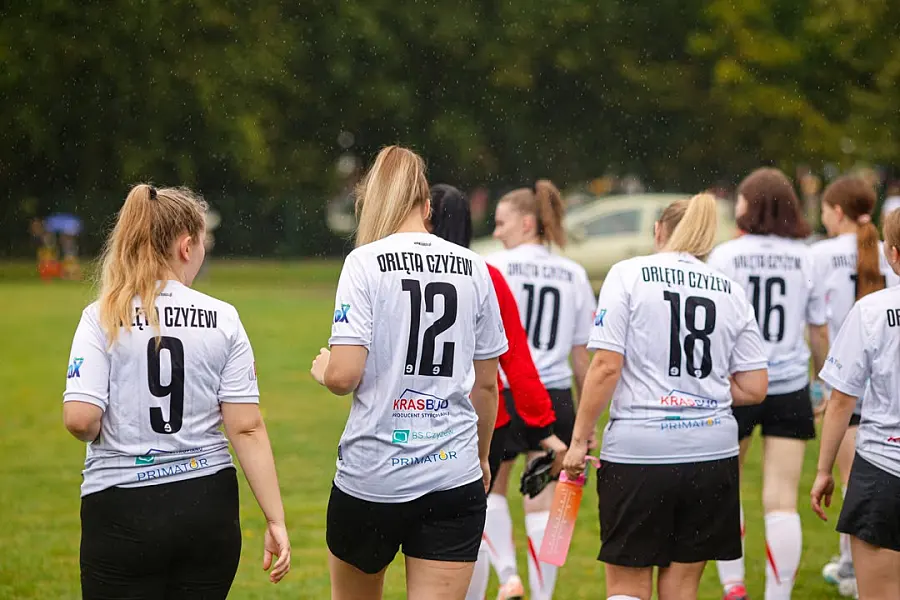 Historyczny moment dla lokalnego sportu nastąpił po godzinie 11:00, gdy deszcz przestał padać, a na murawę wyszły zawodniczki nowo powstałej żeńskiej sekcji Orląt Czyżew. W swoim pierwszym w historii meczu sparingowym zmierzyły się z doświadczoną drużyną trampkarzy Orląt. Panie, które już wkrótce rozpoczną zmagania ligowe, pokazały ambicję i wolę walki, nie ustępując na krok młodszym kolegom z klubu. Mecz zakończył się zwycięstwem trampkarzy 4:2, jednak zawodniczki mogą być dumne ze zdobycia swoich pierwszych, historycznych bramek. Jak na debiutancki występ, drużyna zaprezentowała się z bardzo dobrej strony, co dobrze rokuje na przyszłość.
