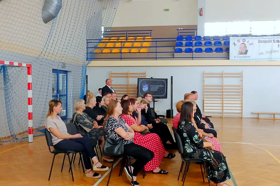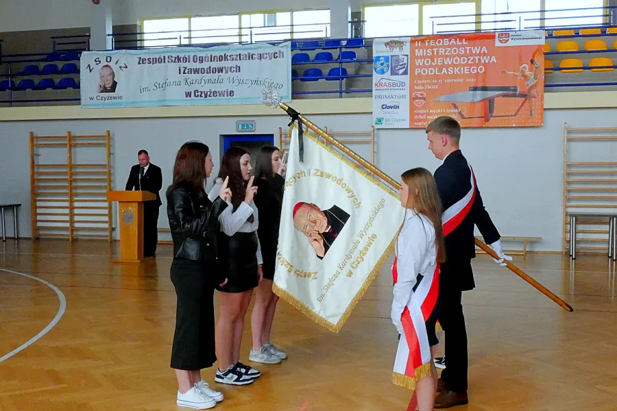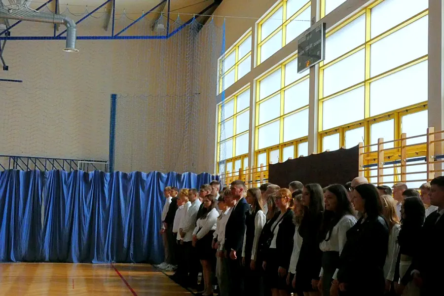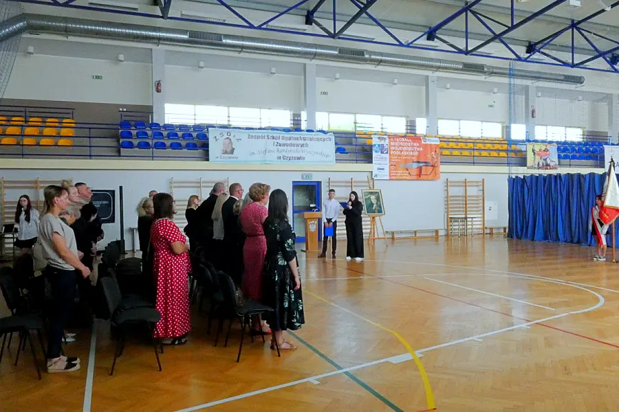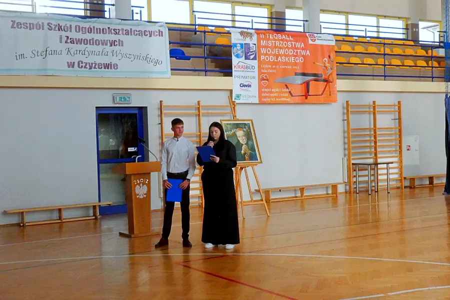Inauguracja roku szkolnego 2025/2026 w Zespole Szkół Ogólnokształcących i Zawodowych im. Stefana Kardynała Wyszyńskiego w Czyżewie miała w tym roku wyjątkowo stonowany charakter. Uroczystość odbyła się w atmosferze zadumy, naznaczonej żałobą po niedawnej śmierci Dariusza Zdrojewskiego, wieloletniego pedagoga i bibliotekarza placówki. Widocznym symbolem smutku, jaki dotknął całą społeczność szkolną, była czarna wstęga zawieszona na sztandarze szkoły.