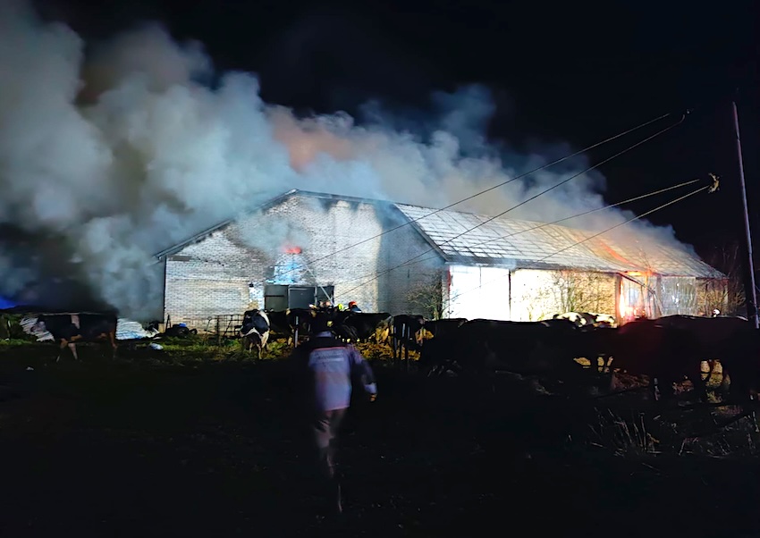 Kilkadziesiąt sztuk bydła znalazło się w śmiertelnym niebezpieczeństwie w wyniku pożaru, który wybuchł w czwartek po południu w miejscowości Wyszonki-Wojciechy (gmina Klukowo). Ogień objął kompleks budynków gospodarczych. Na miejscu trwa szeroko zakrojona akcja gaśnicza, która może przeciągnąć się do późnych godzin nocnych.