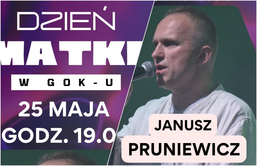 Gminny Ośrodek Kultury w Klukowie organizuje koncert z okazji Dnia Matki. 25 maja 2025 roku o godzinie 19:00 na scenie wystąpi Janusz Pruniewicz, artysta wykonujący przeboje polskiej muzyki rozrywkowej.